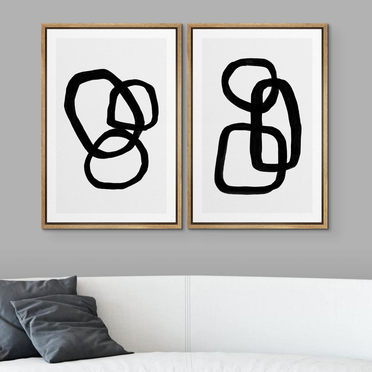 Signwin Framed Canvas Print Wall Art Set Mid-Century Geometric Ring Collage Abstract Shapes Illustrations Modern Art Minimal Boh