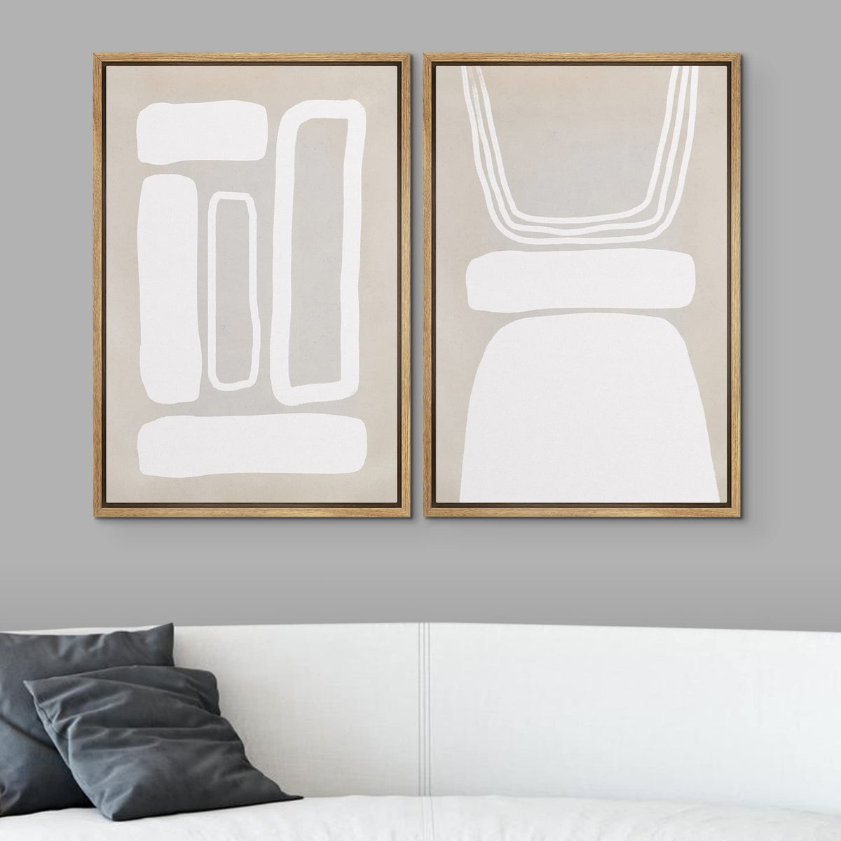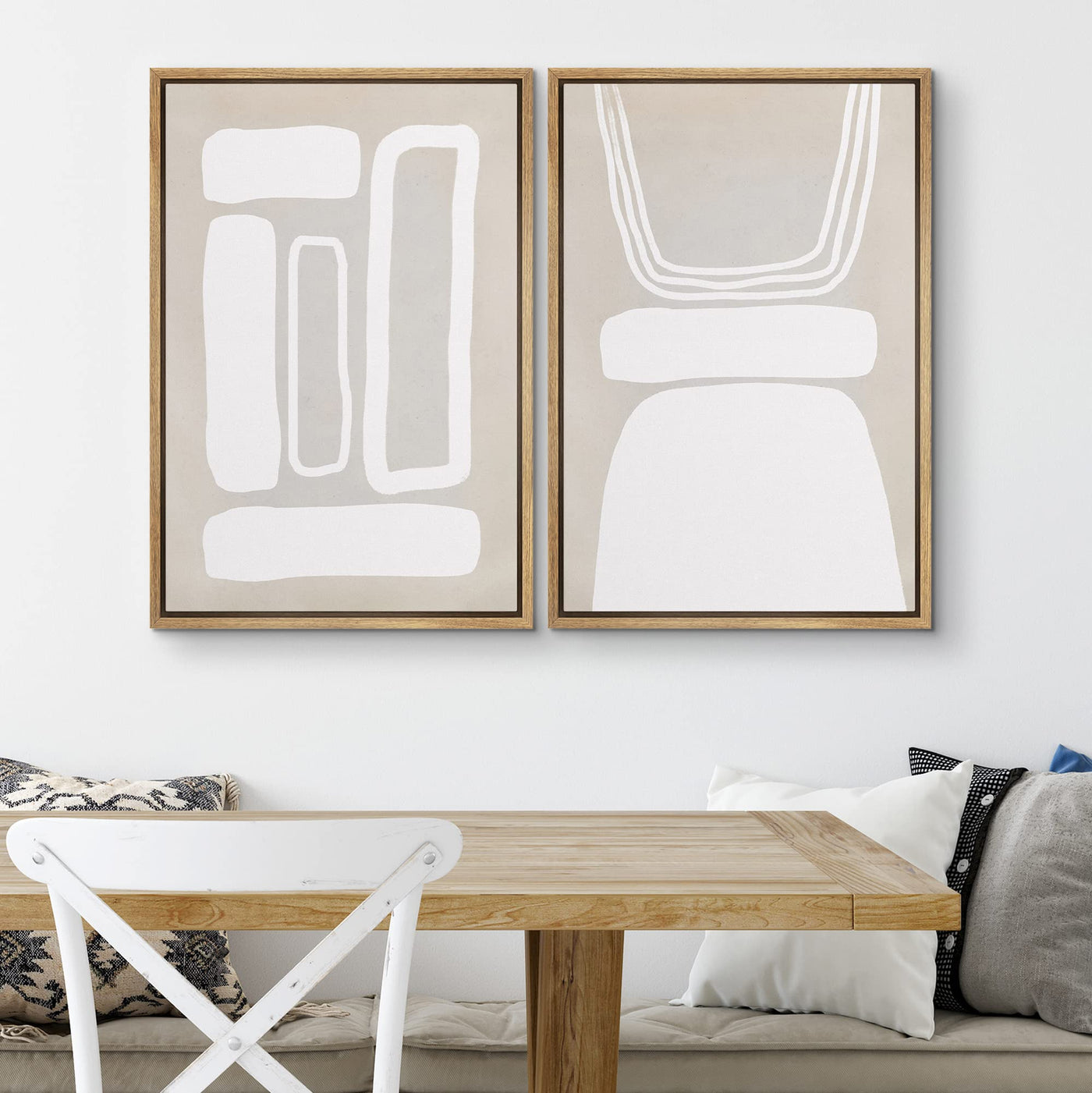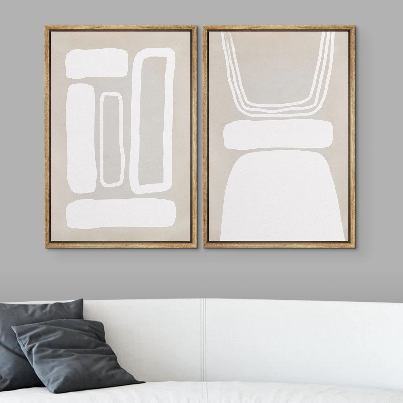 SIGNWIN Framed Canvas Print Wall Art Set Retro 1960s Geometric Figure Collage Abstract Shape Cozy Neutral Modern Art Decorative Nordic Multicolor for Living Room Bedroom Office - 16''x24''x2 Natural