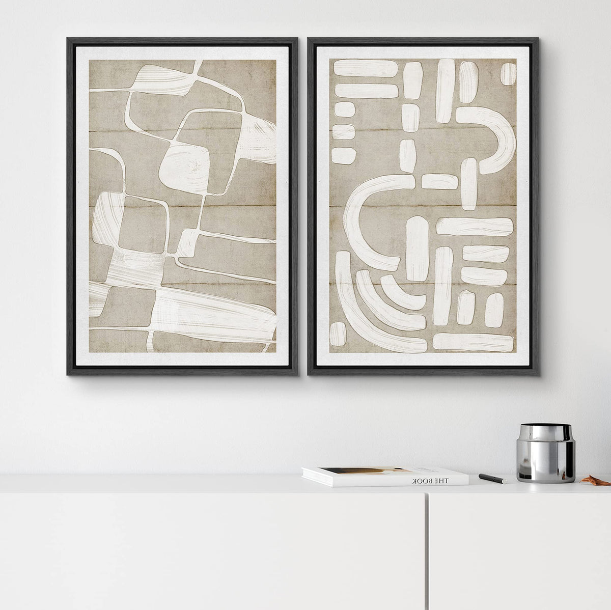 SIGNWIN Framed Canvas Print Wall Art Set White Tan Geometric Polygons Abstract Shapes Illustrations Minimalism Decorative Bohemian Relax/Zen for Living Room Bedroom Office - 16''x24''x2 Black
