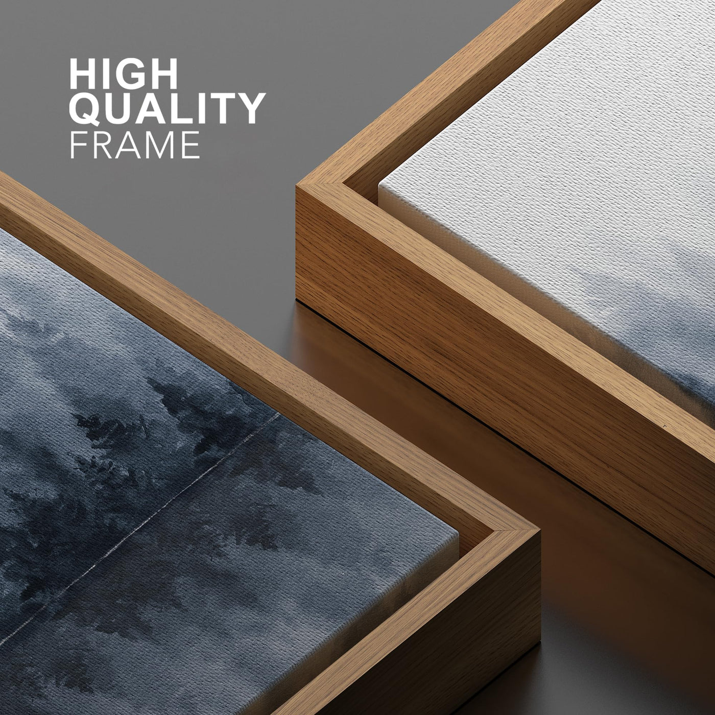 SIGNWIN Framed Canvas Print Wall Art Woodland Nursery Decor Blue Winter Mist Pastel Mountain Forest Nature Modern Art Landscape for Living Room Bedroom Office - 24''x36'' NATURAL