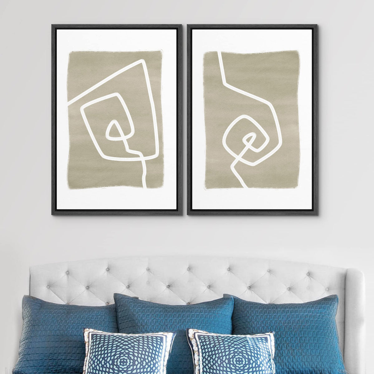 SIGNWIN Framed Wall Art Print Set Angular White Lines Over Dark Blue Background Abstract Swirly Digital Art Modern Art Mid-Century Modern Expressive for Living Room Bedroom Office - 24''x36''x2 Black