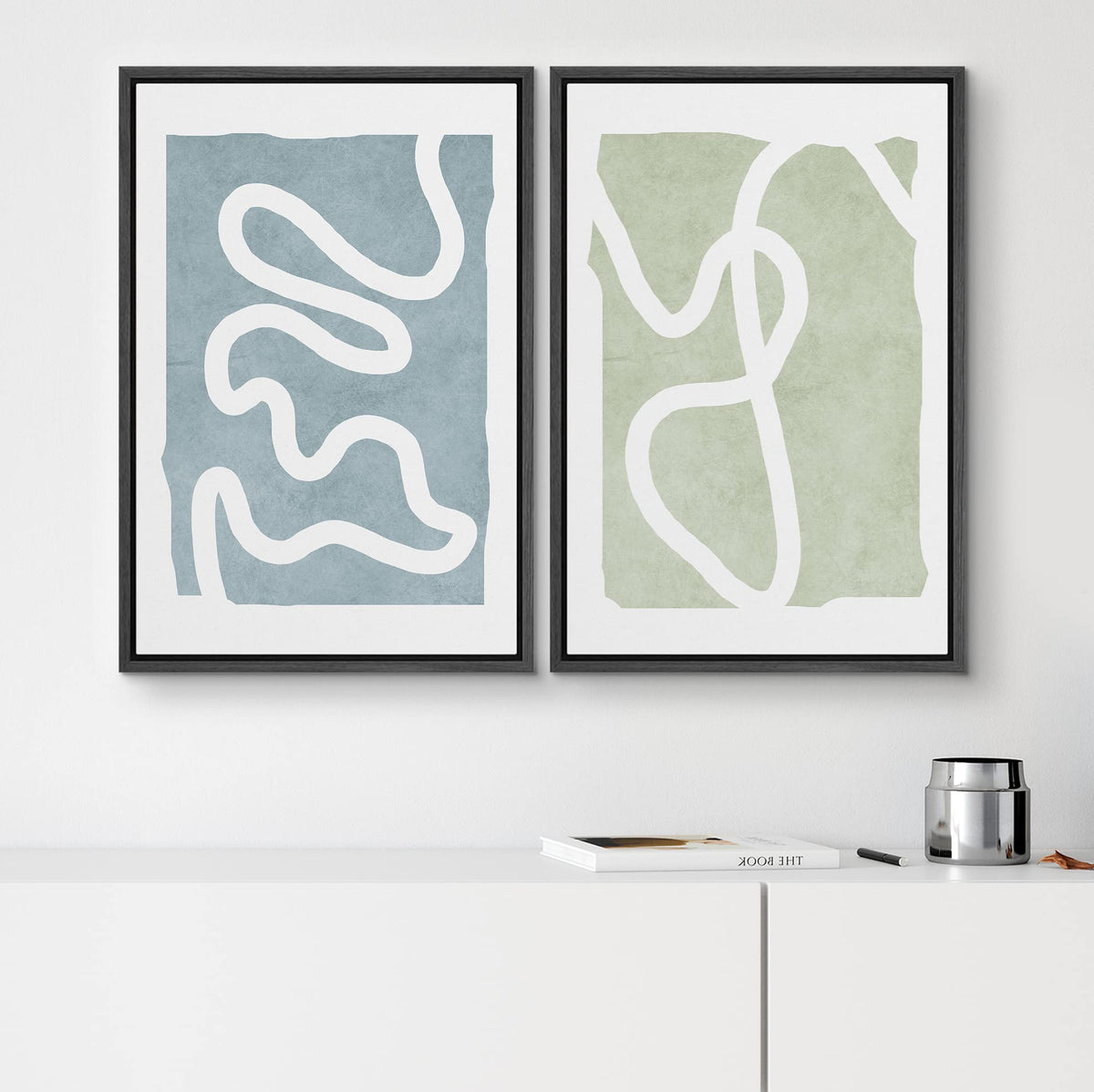 SIGNWIN Framed Wall Art Print Set White Lines Over Blue Green Background Abstract Swirly Digital Art Modern Art Mid-Century Modern Expressive for Living Room Bedroom Office - 24''x36''x2 Black