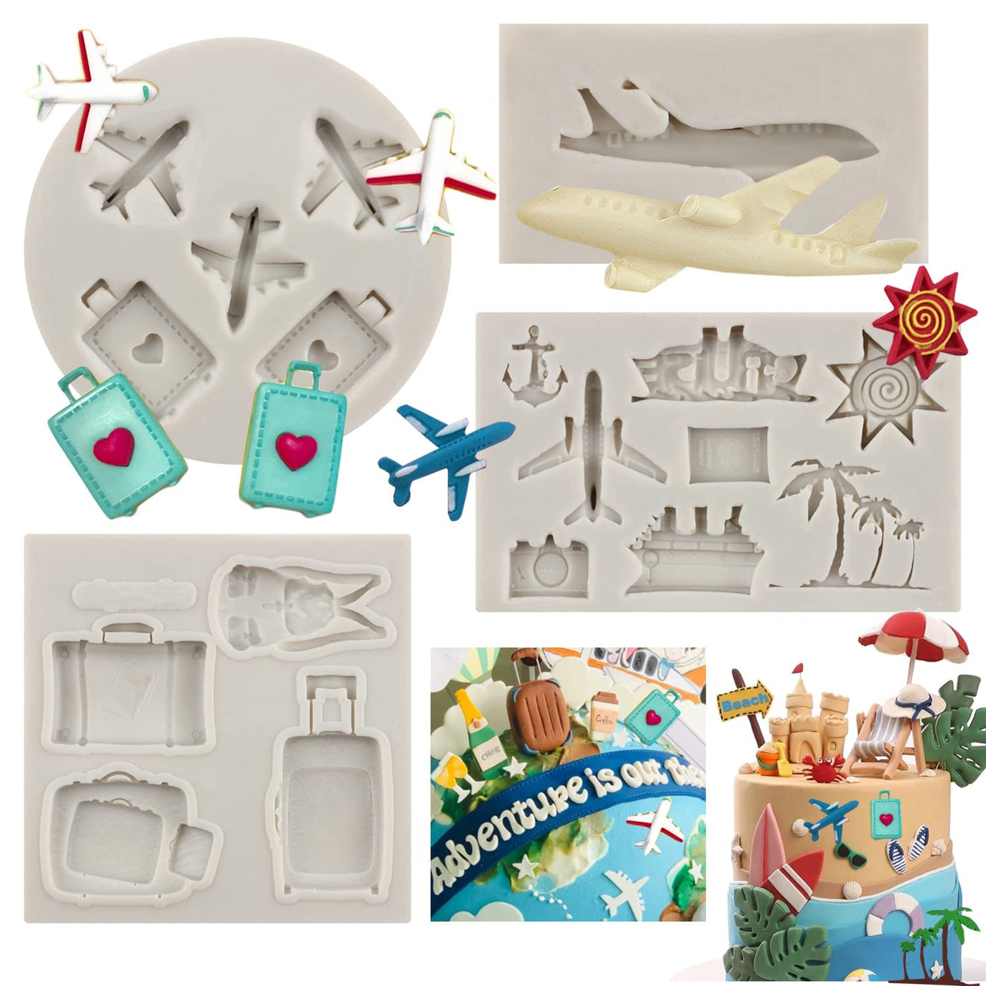 Sijiangmold Airplane Silicone Mold Summer Vocation Travel Fondant Molds Seaside Holiday Silicone Mold For Travel Luggage Bag Cho
