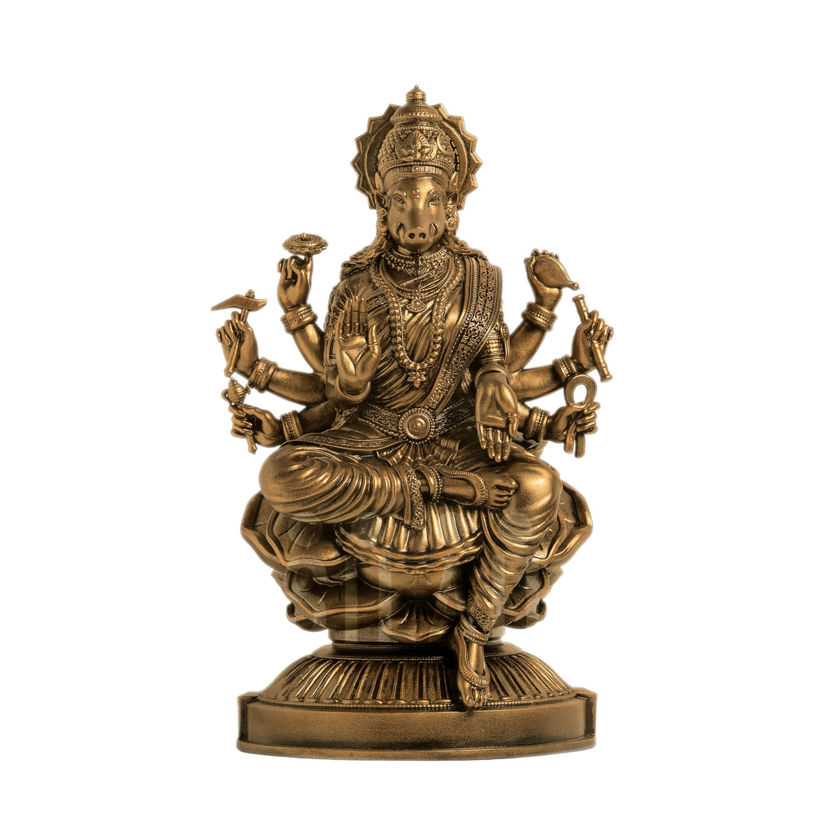 The Shakthi Avatar Of Vishnu Goddess Varahi Symbolizes Strength, Courage, And The Power To Vanquish Evil. Our Sculpture Beautifully Captures Her Divine Essence, Making It A Powerful Addition To Any Spiritual Space. Bring Her Blessings And Divine Energy Into Your Home With This Stunning Depiction Of The Goddess, Helping You Overcome Obstacles With Her Protective Presence.
