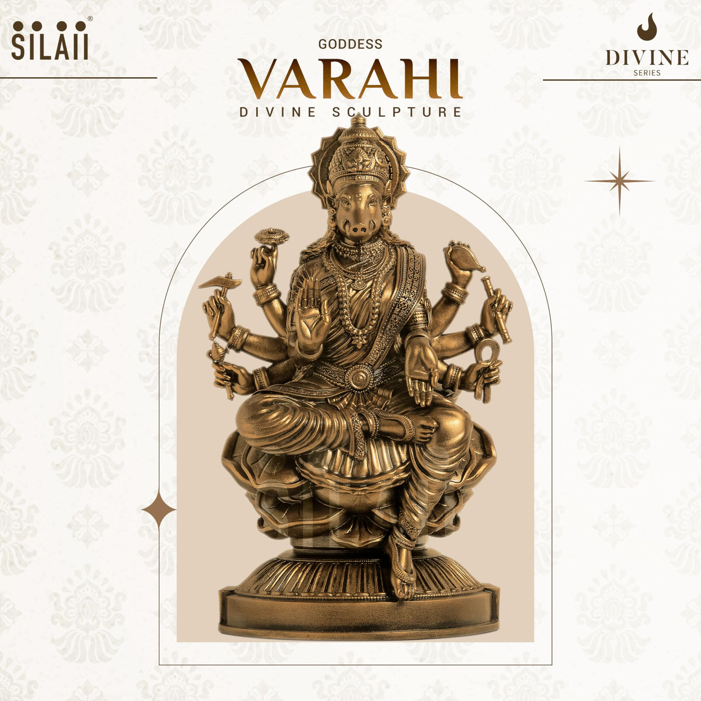 Silaii Goddess Varahi Amman Sculpture - Antique Bronze Finish, Handcrafted Statue For Puja Room, Home Decor, And Gifting (9 Inch