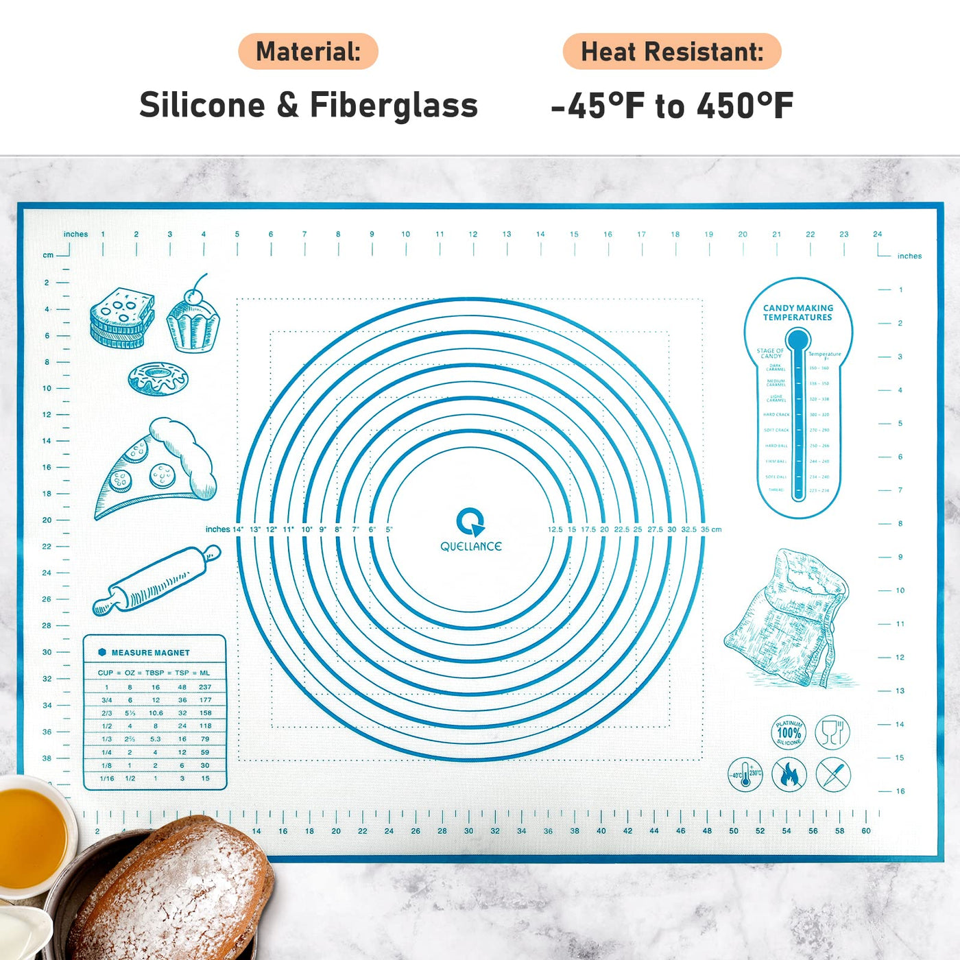 • Q: Can I use this mat for rolling out dough? A: Absolutely! The silicone baking mat is designed for rolling out various types of dough, including pastry, pie crust, and cookie dough.