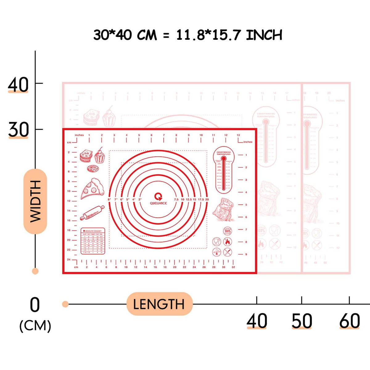 • Q: Are there measurement markings on the mat? A: Yes, the silicone pastry mat includes measurement markings and circular guides, which help in rolling out dough to the desired thickness.