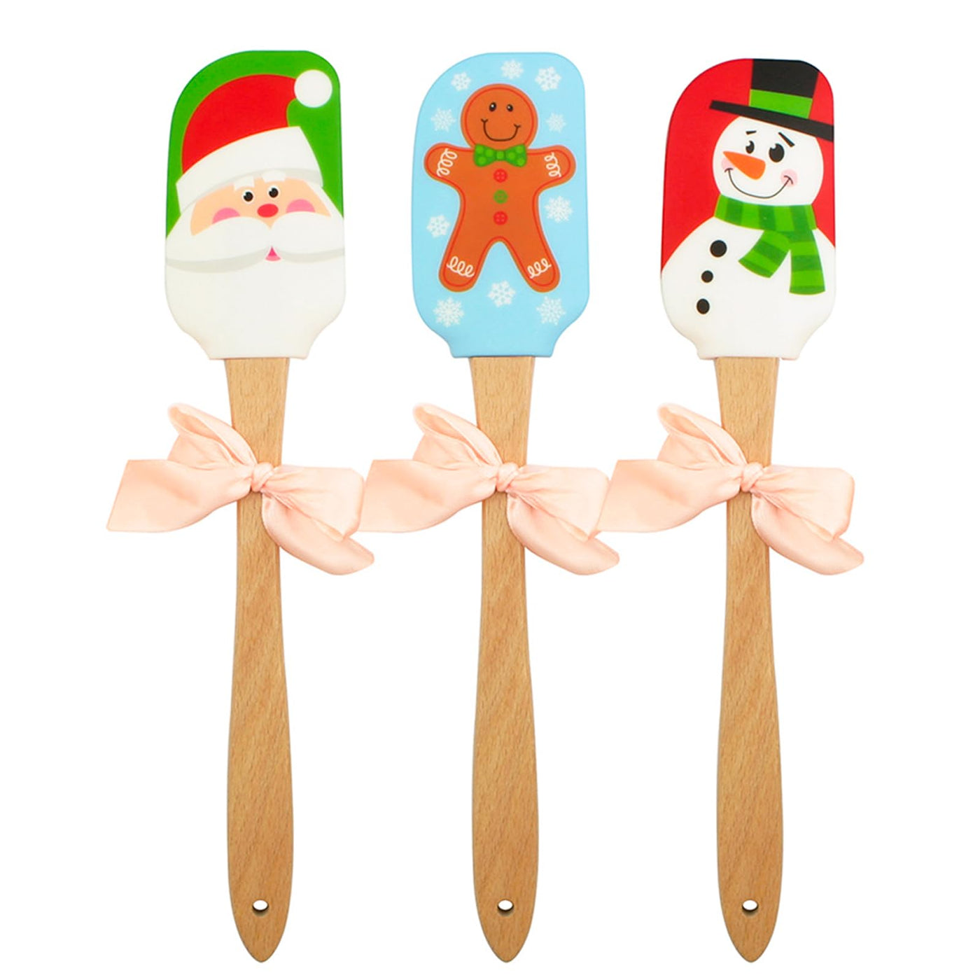 Silicone Spatula, Caliamary 3 Pieces Kitchen Silicone Spatula Set, Christmas Cake Decorating Spatula With Wooden Handle, Snowman
