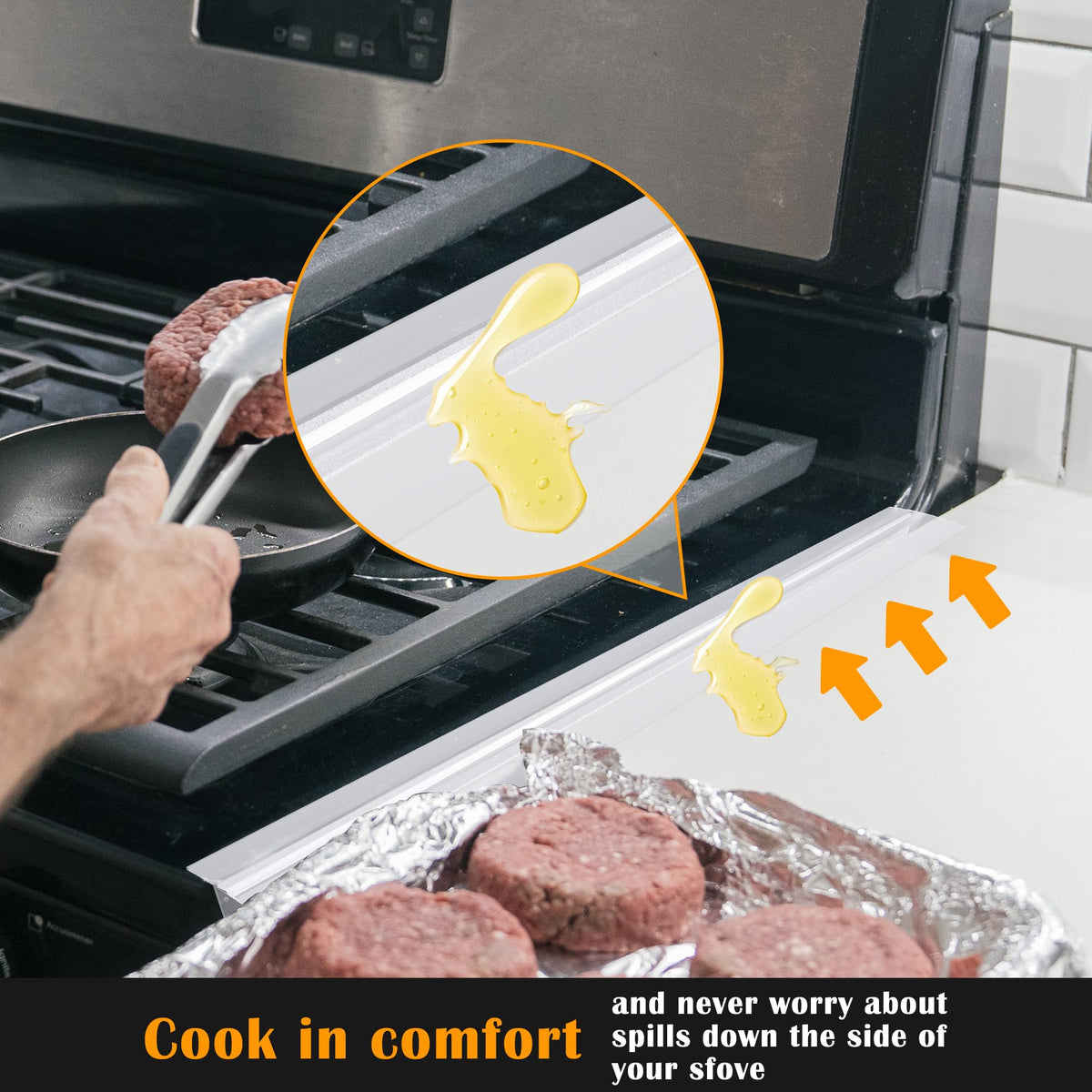 - Q: How do I clean the silicone stove gap cover? A: You can clean the silicone gap cover by wiping it with a damp cloth or placing it in the dishwasher for easy maintenance.