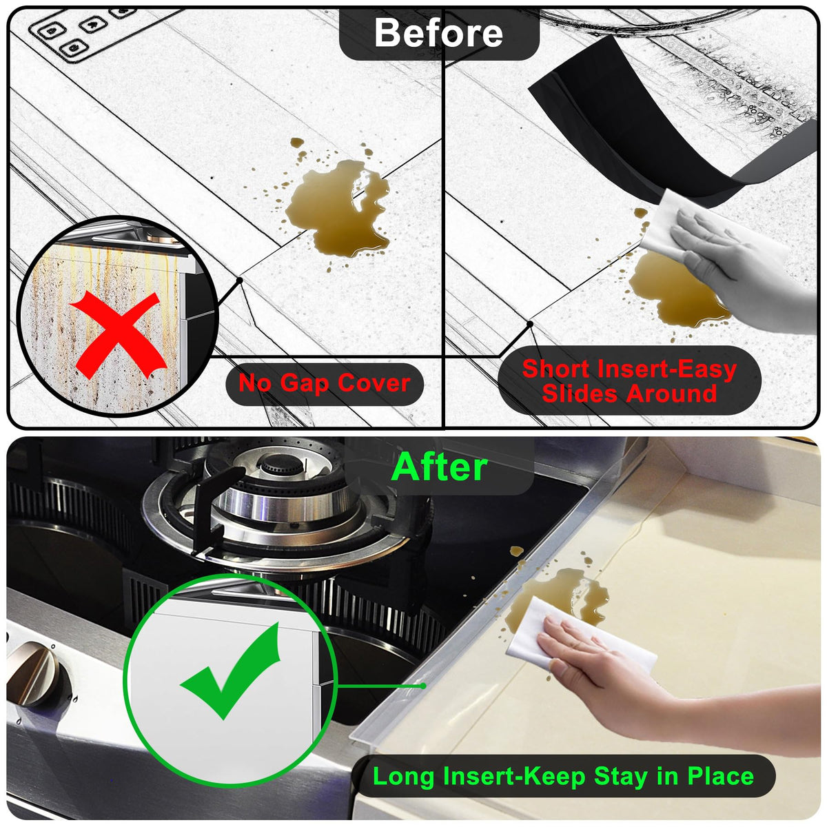 - Q: Does the gap cover stay in place? A: The improved design features a shiny, non-slip surface that adheres well to your counter, minimizing movement.