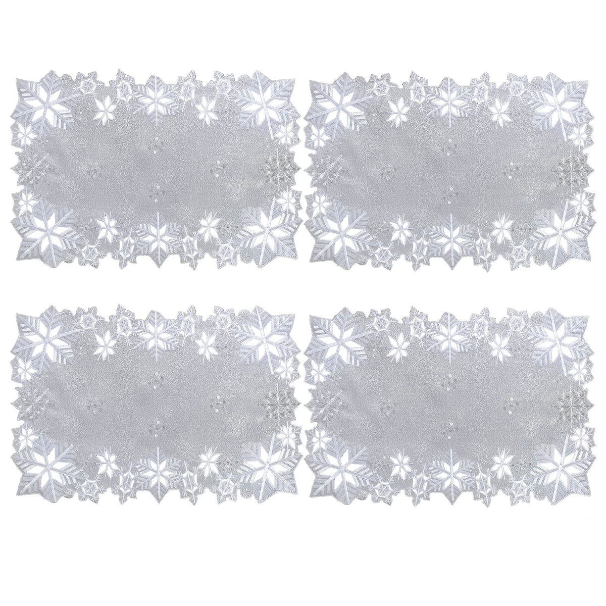 Simhomsen Embroidered Snowflakes Table Placemats For Christmas Holiday And Winter (Silver, 13