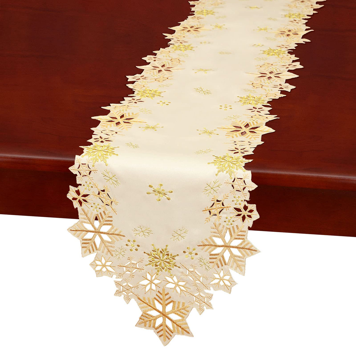 Simhomsen Embroidered Snowflakes Table Runners For Christmas Holiday And Winter (Gold, 14