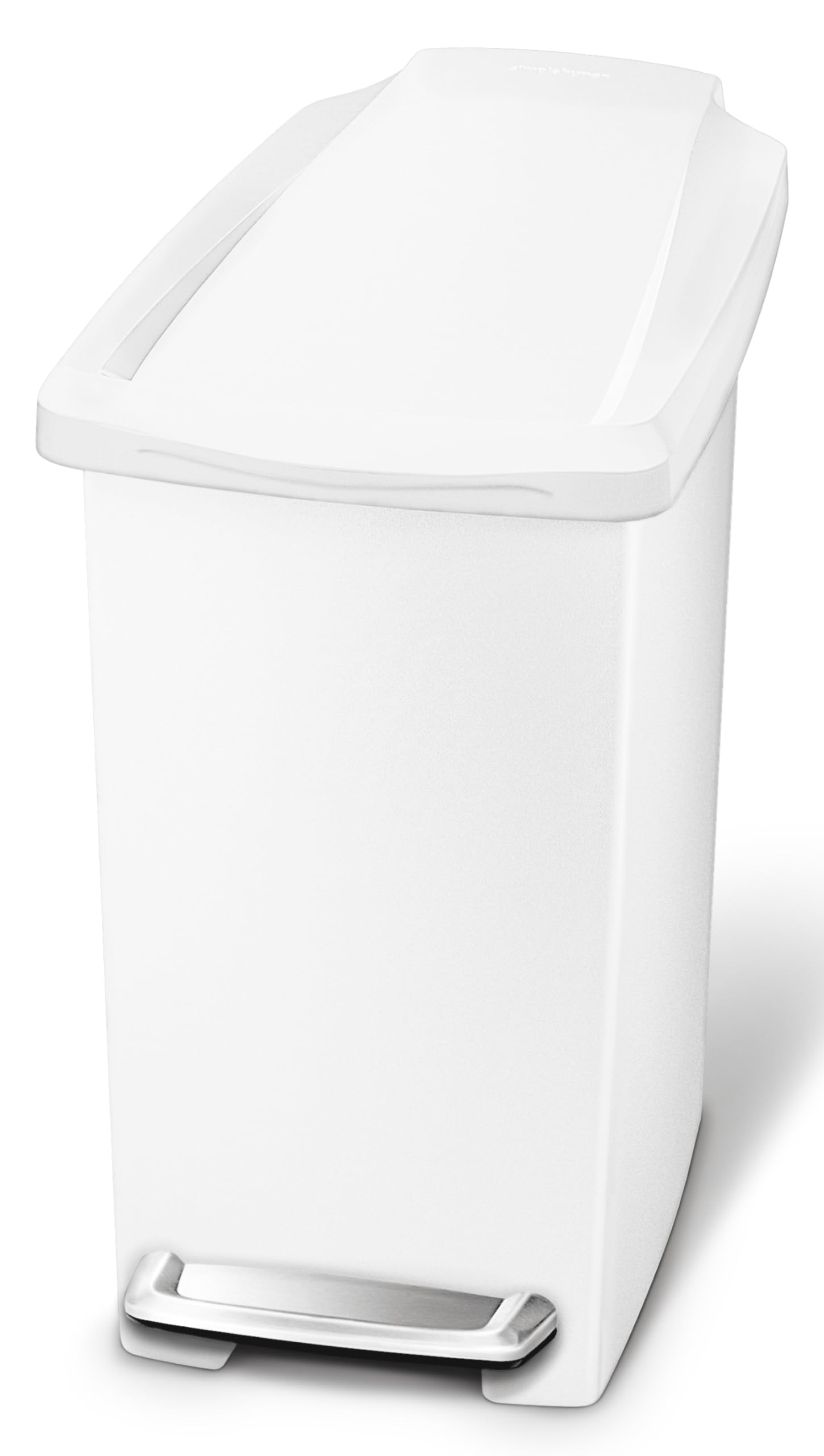 Simplehuman 10 Liter / 2.6 Gallon Compact Slim Bathroom Or Office Step Trash Can, White Plastic