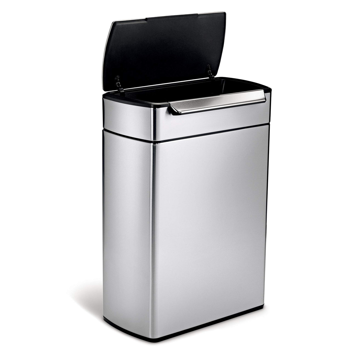 - Q: What features make the simplehuman trash can user-friendly? A: User-friendly features include the easy open touch-bar, a wide opening for convenience, a stay-open lid, and a specially designed hinge that maximizes space.