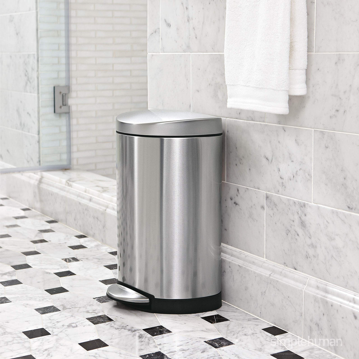 • Q: Is the trash can suitable for small spaces? A: Yes, the semi-round design of the simplehuman trash can makes it ideal for smaller spaces like bathrooms or offices.