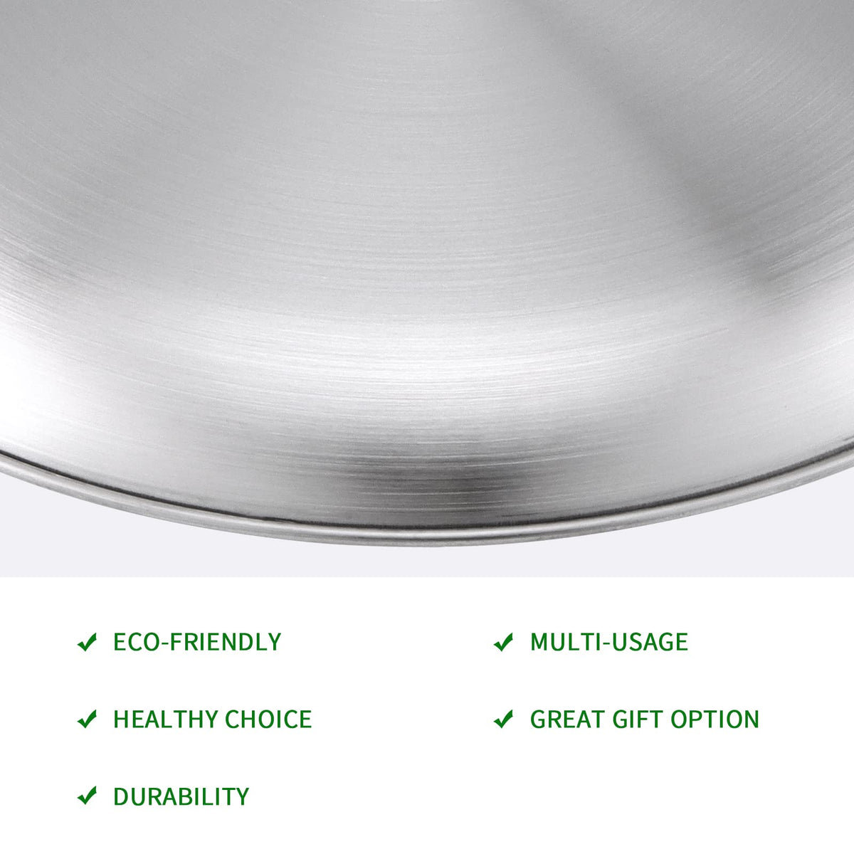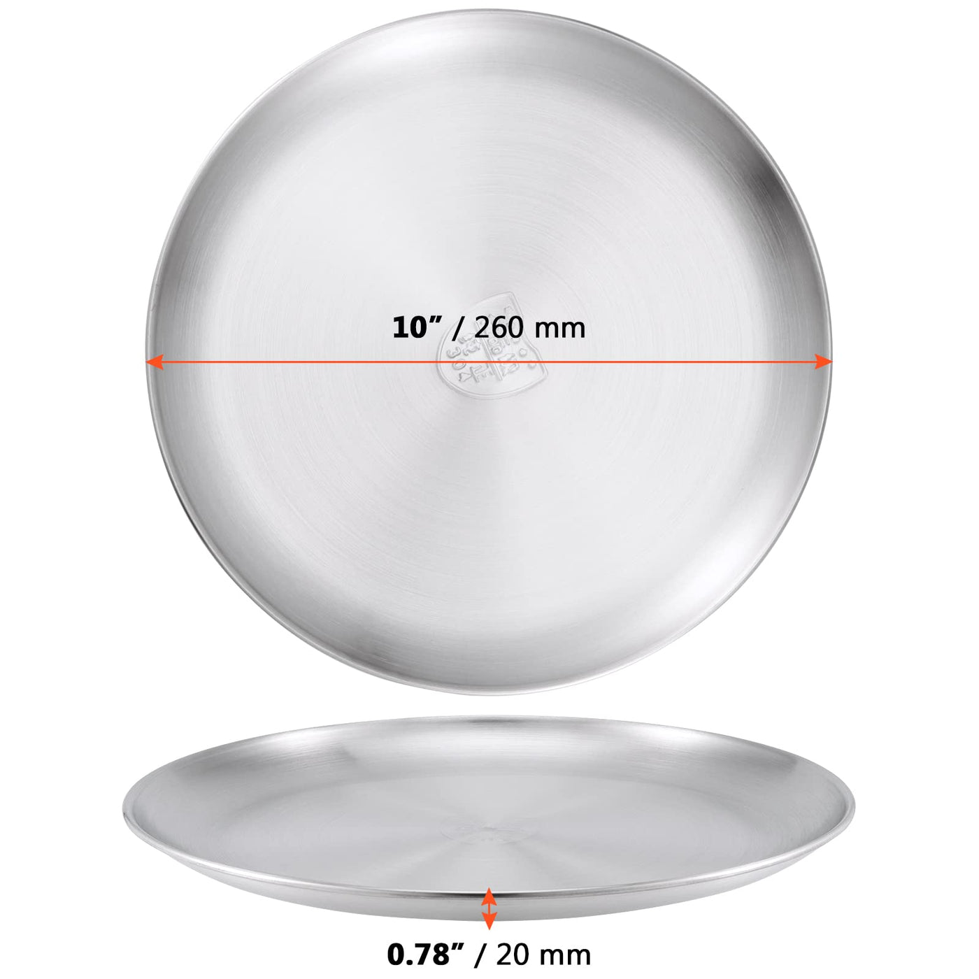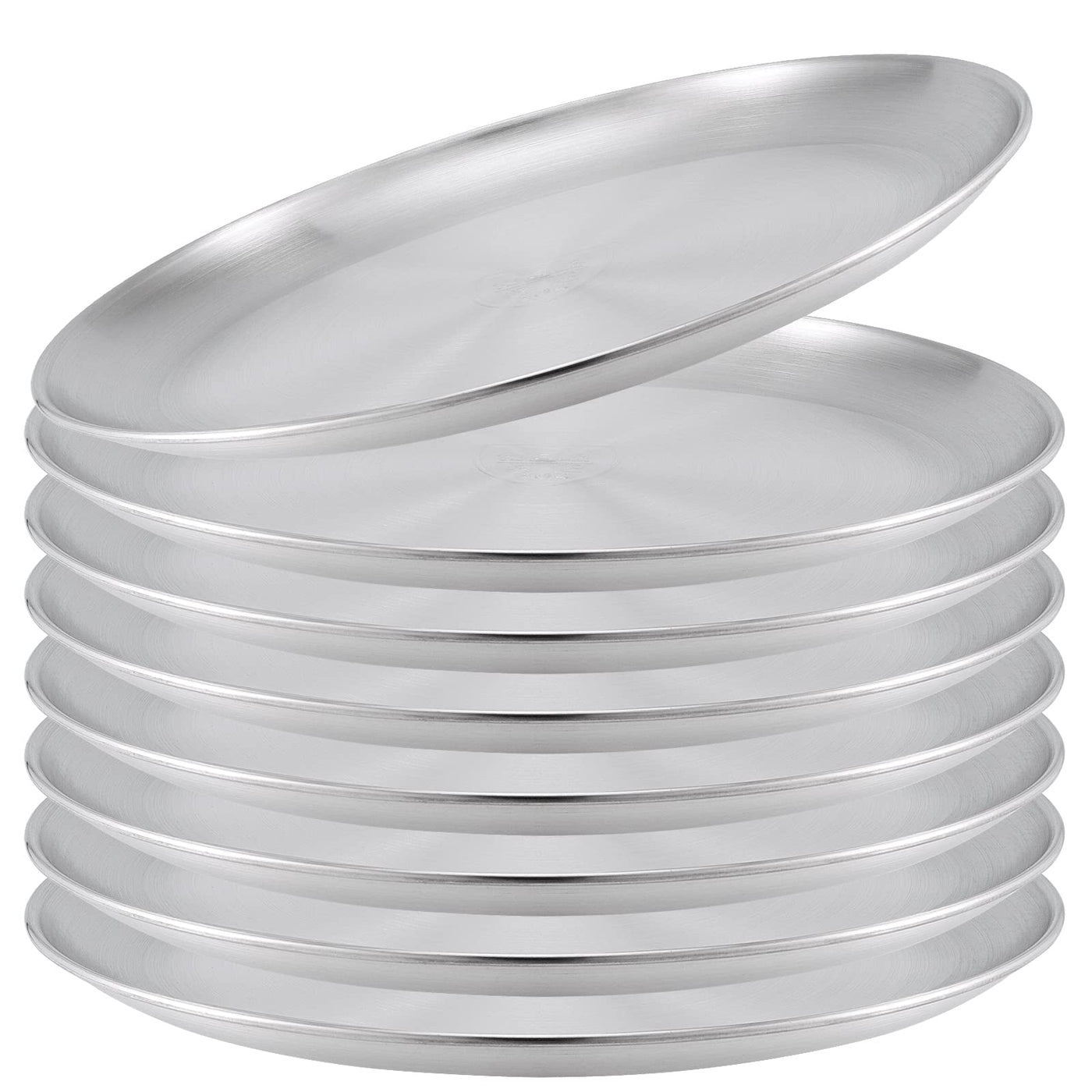 Sinjeun 8 Piece 304 Stainless Steel Dinner Plates, 10 Inch Double Layer Round Serving Plates, Silver Brushed Metal Dishes For Ca