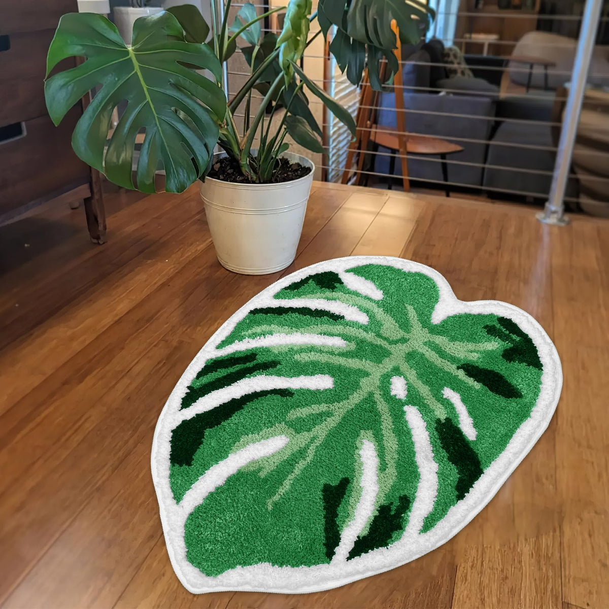 - Q: What is the design of the rug? A: The rug features a unique Monstera leaf design that adds a tropical and stylish element to your bathroom decor.