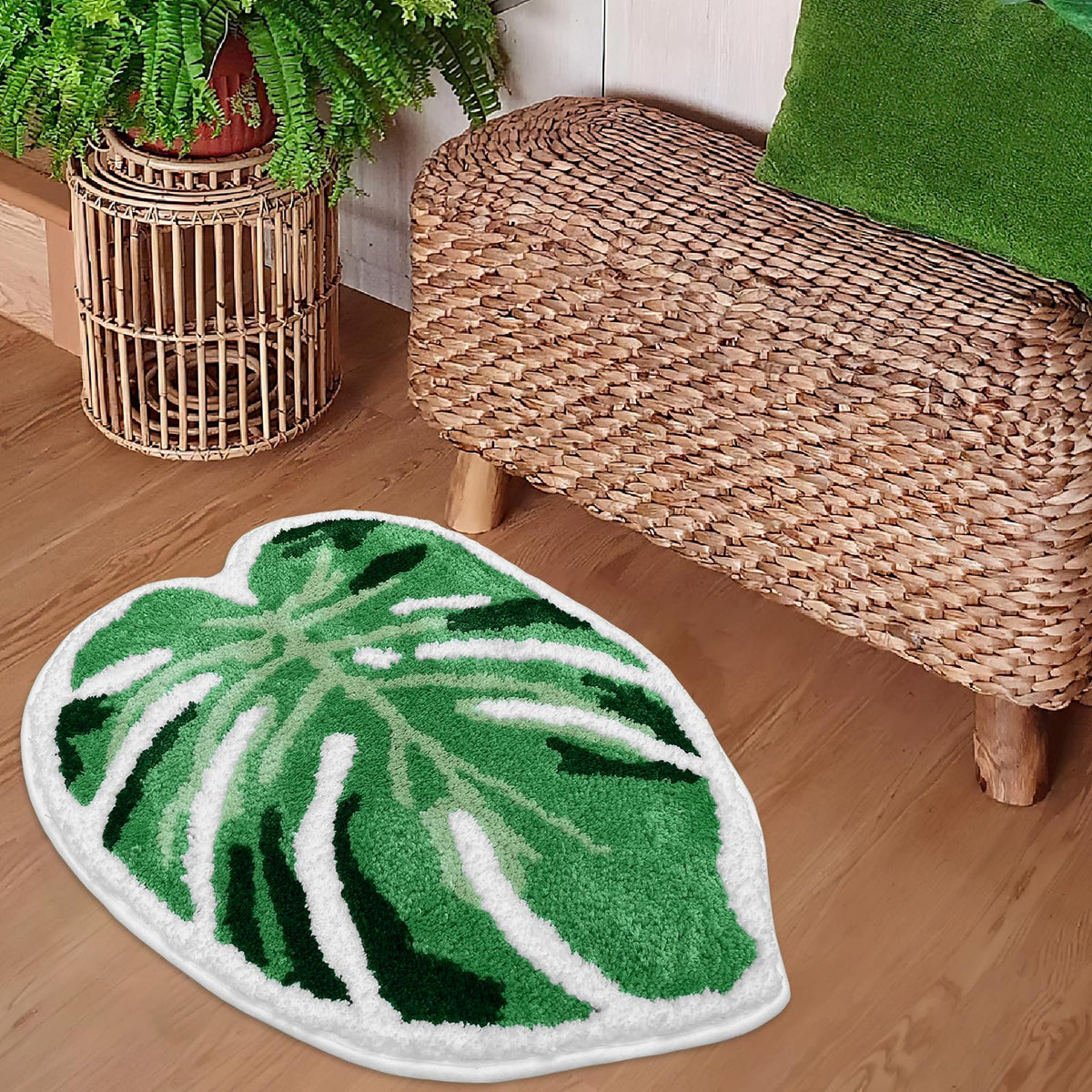 Sisher Leaf Rug Cute Monstera Rug Non Slip Bath Mat Absorbent Monstera Bath Mat Fun Kitchen Or Bathtub Rugs Green Bath Mat(21''X