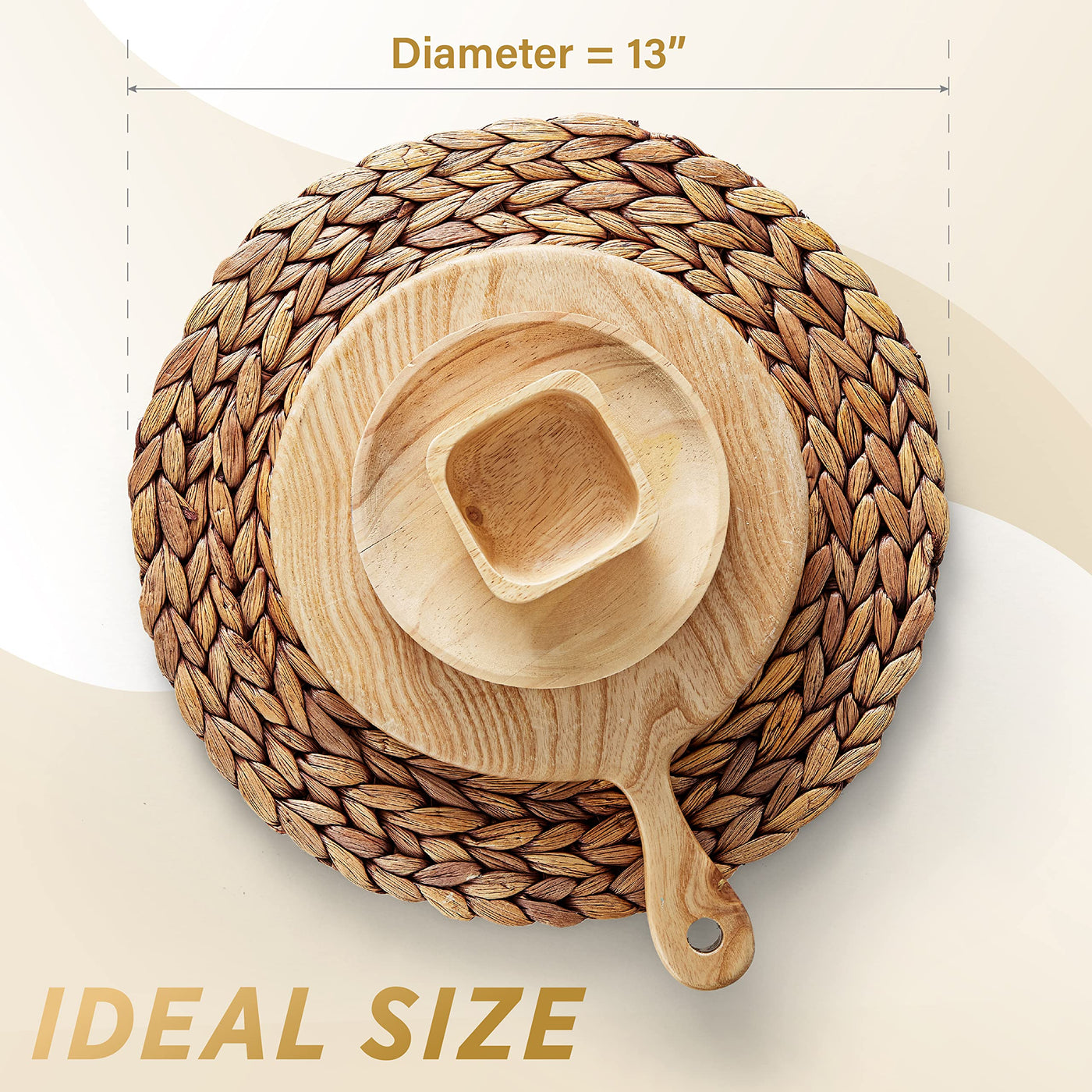 (Sizes: 12''-13''-14'') Bluewest Woven Placemats Set Of 14, Brown Round Rattan Placemats, Wicker Water Hyacinth Placemats, Braid