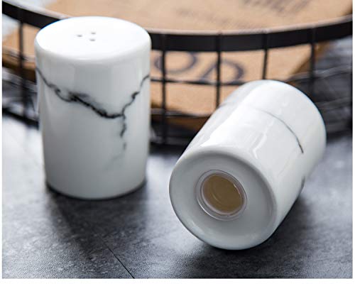 Sizikato 2Pcs Marble Stripes Ceramic Salt And Pepper Shakers Marble-Style Furniture Kitchen And Table Decoration.