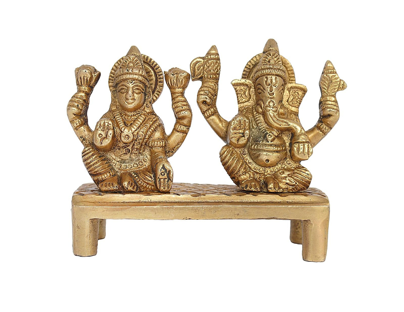 Skywalk Handcrafted Metal Brass Laxmi Ganesh Religious Idol Figurine Hindu God Sculpture,Brass Ganesha Lakshmi Idol Murti Pair For Puja,Diwali And Good Luck Pbs-Gl-12