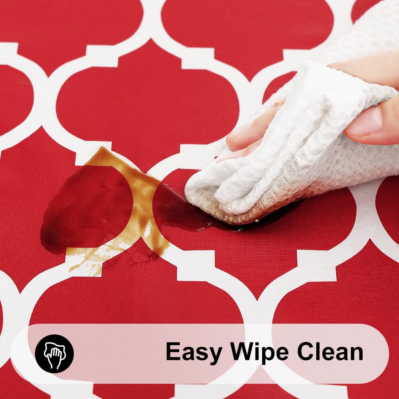 - Q: How do I clean this tablecloth? A: You can easily clean the tablecloth by wiping it down with a damp cloth or sponge, as it is designed to be wipeable.