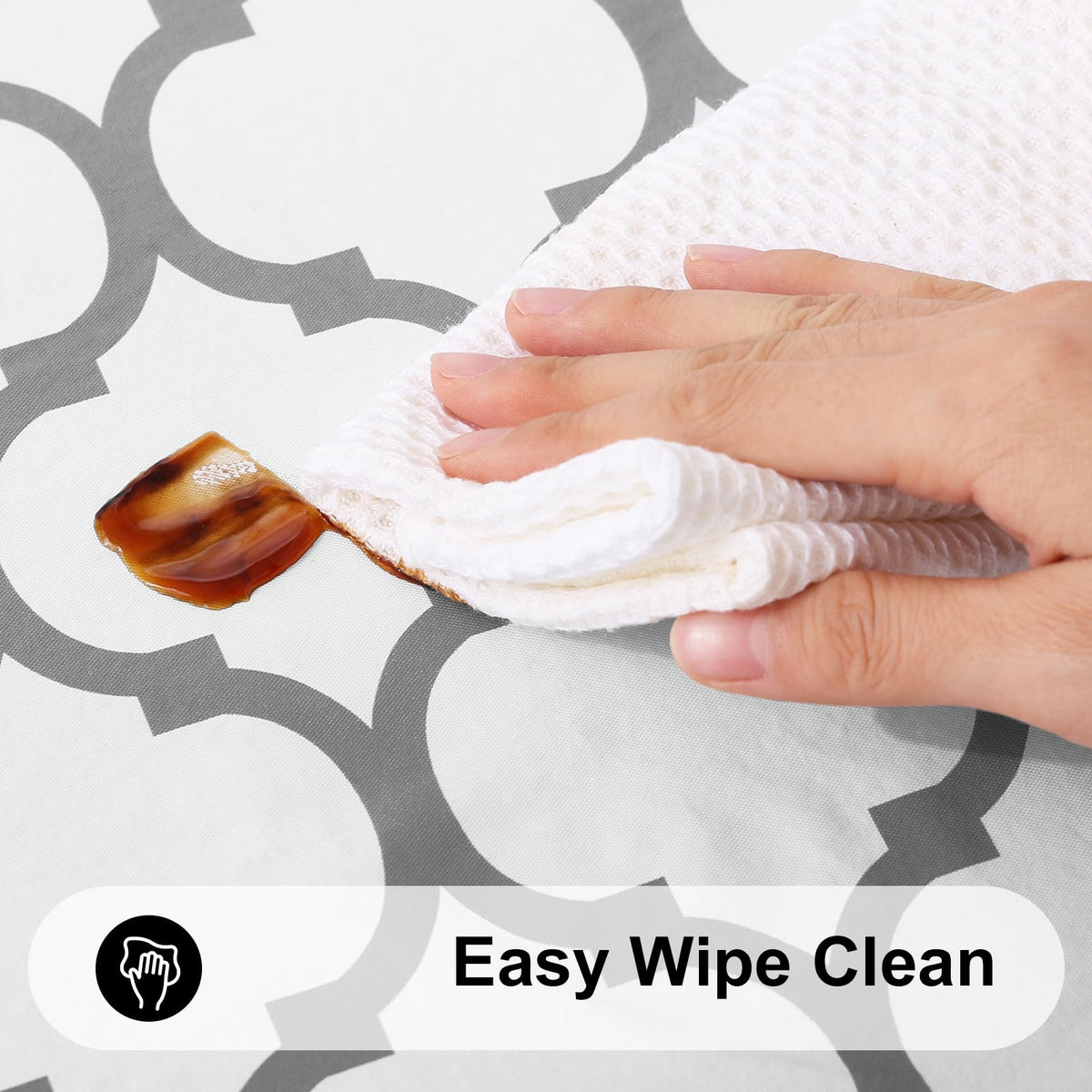 - Q: How do I clean the Smiry Round Plastic Table Cloth? A: The tablecloth features a 100% waterproof surface, making it easy to clean. Simply wipe it down with a damp cloth or sponge to remove stains.