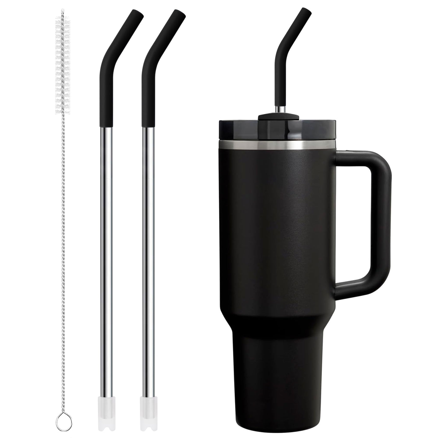 Snowfall Metal Straw For Stanley 40 Oz Cup, Long Reusable Stainless Steel Replacement Straws With Silicone Tip For Simple Modern