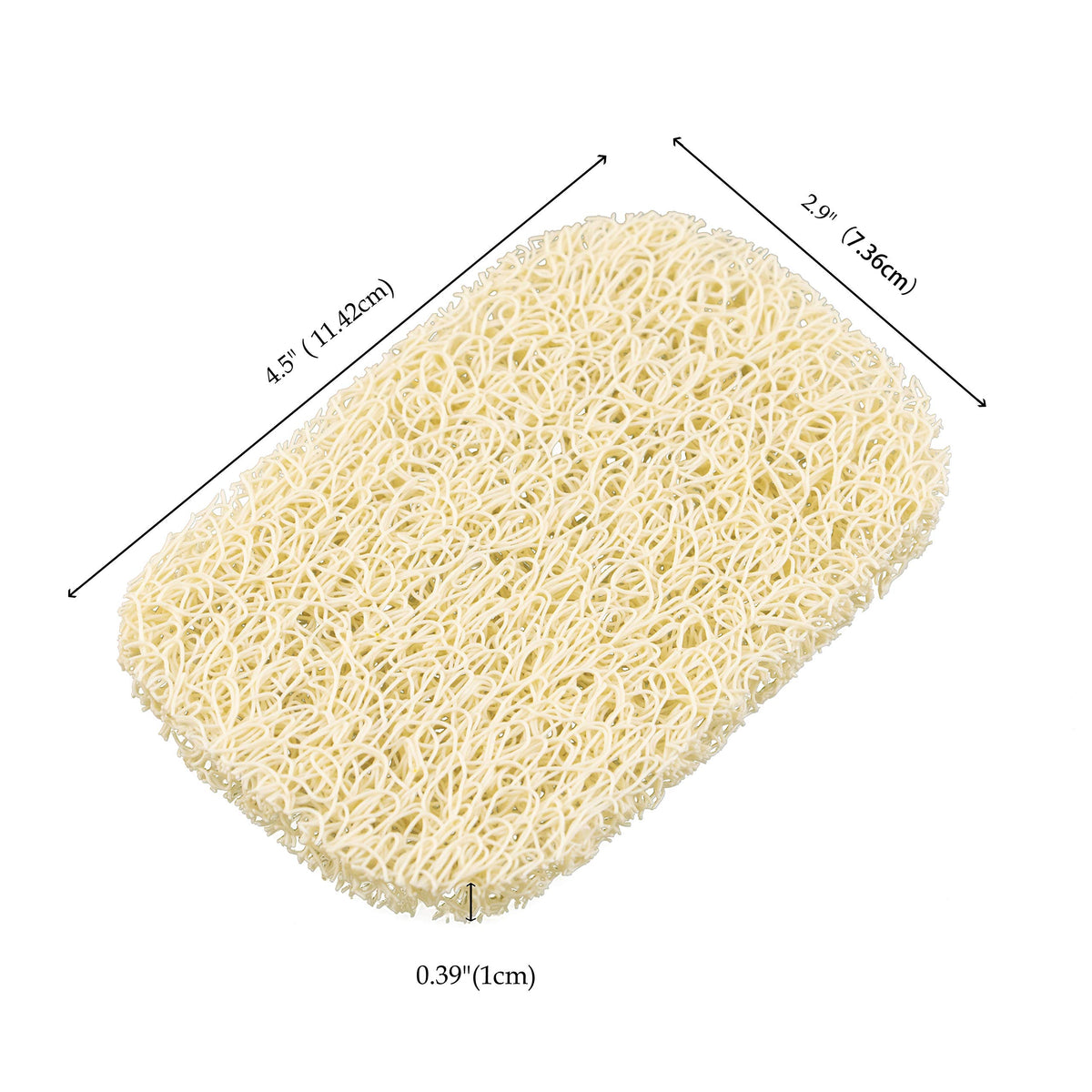 - Q: What are the dimensions of each soap saver pad? A: Each soap saver pad measures 4.5 inches by 2.95 inches by 0.4 inches.