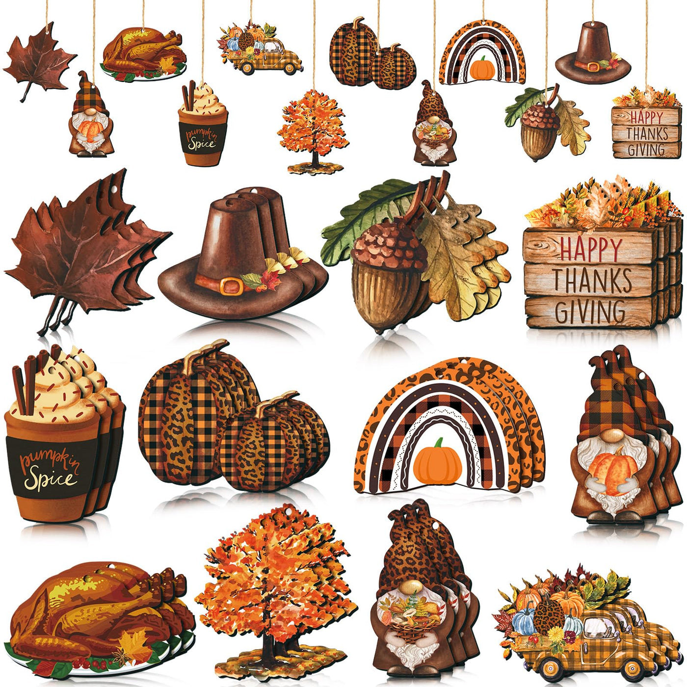 Soaoo 36 Pcs Thanksgiving Ornaments for Small Tree Thanksgiving Tree Decorations Turkey Pumpkin Fall Maple Leaves Truck Cutouts