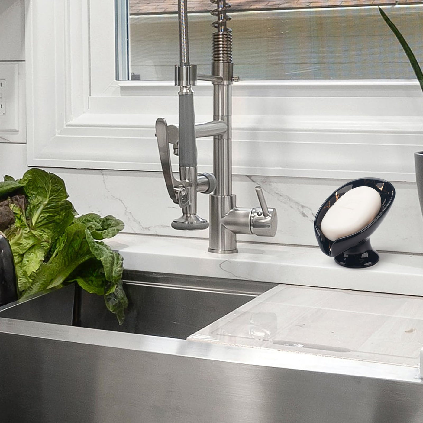 Soap Dish, Ceramic Soap Holder, Self Draining Soap Dish Holder, Leaf Shape Soap Bar Holder (Black)