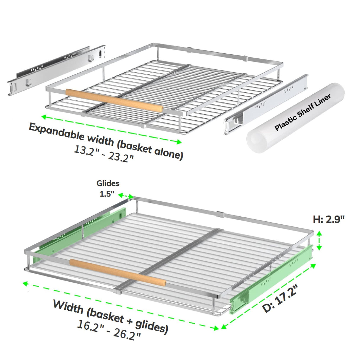 - Q: What is the maximum width this pull-out drawer can expand to? A: The maximum width this pull-out drawer can expand to is 26.2 inches.