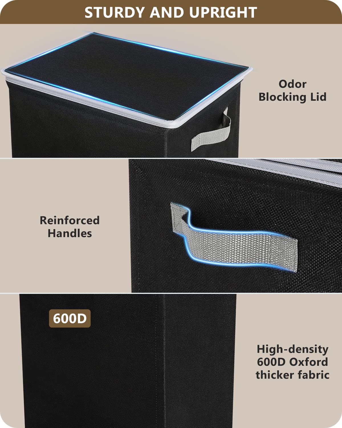 SOLEDI Laundry Hamper Black with Lid and Removable Bag - 100L Large and Tall Laundry Basket Collapsible with Handle for Clothing and Toys Storage - Dirty Clothes Hamper for Bedroom bathroom dorm