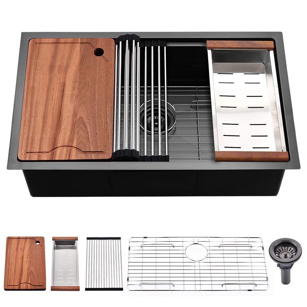 SOMRXO 28 Inch Black Stainless Steel Undermount Kitchen Sink Workstation 28?8 Kitchen Sink Undermount Workstation Ledge Gunmetal Black Stainless Steel Kitchen Sink 10'' Deep Single Bowl Kitchen Sinks