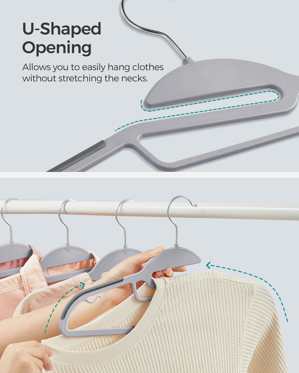 Songmics 50 Pack Coat Hangers, Heavy-Duty Plastic Suit Hangers, S-Shaped Opening, Space-Saving, 360 Swivel Hook, 16.3 Inches Wid