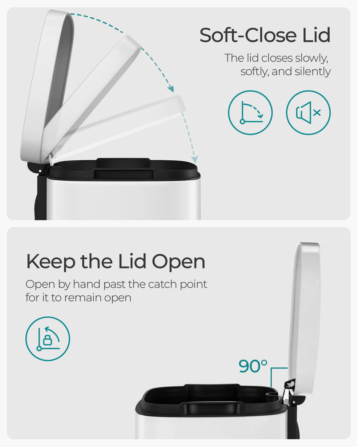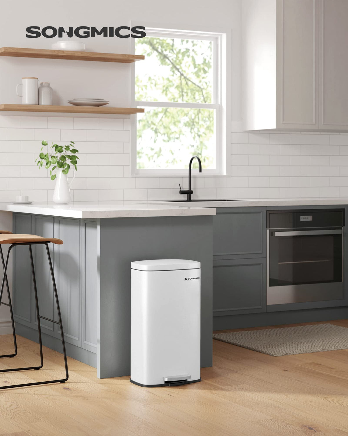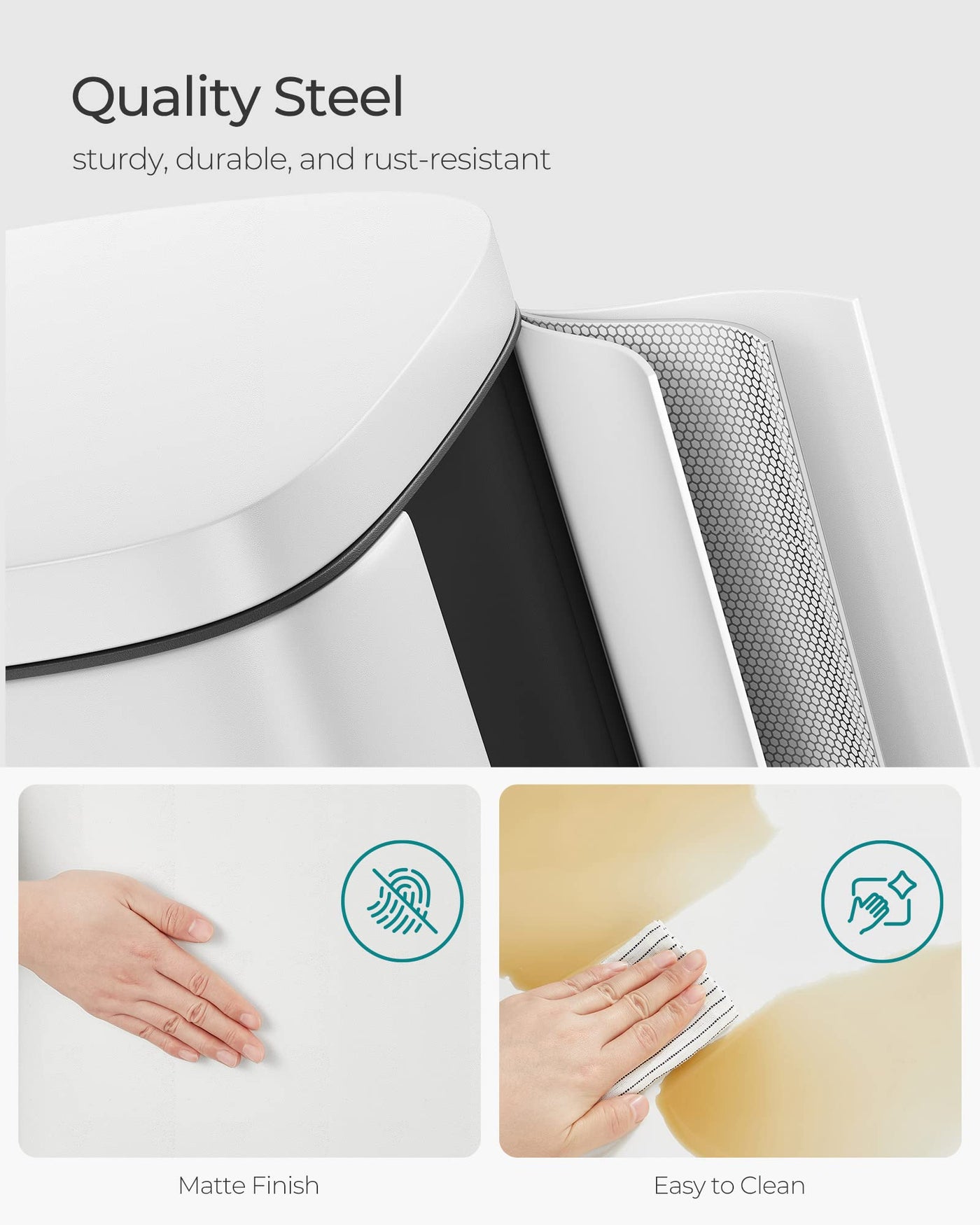 - Q: What is the color of the SONGMICS trash can? A: The SONGMICS trash can features a modern matte white finish that can complement various decor styles.