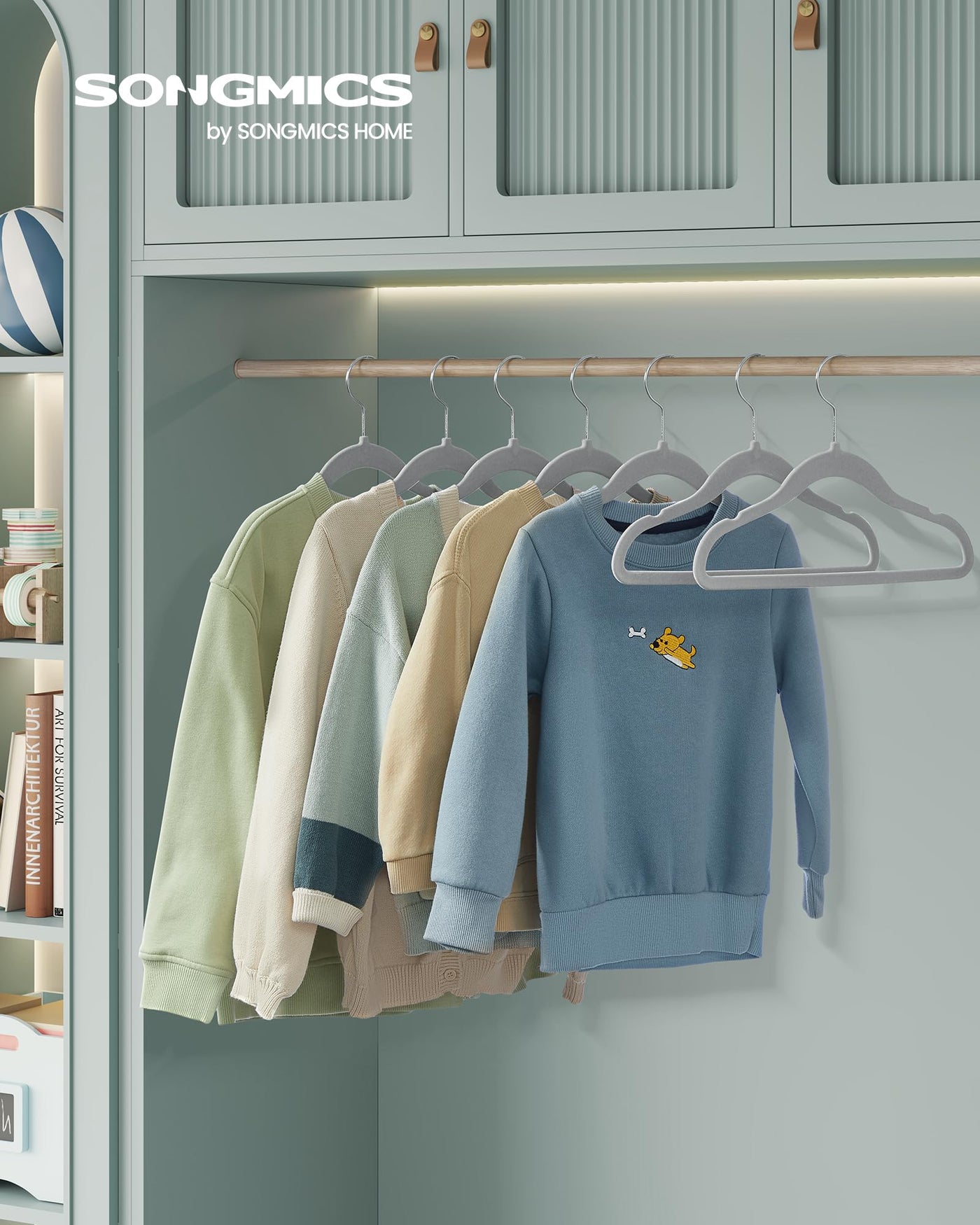 - Q: What is the size of the SONGMICS Baby Hangers? A: The SONGMICS Baby Hangers are sized at 11.8 inches wide and 8.1 inches high, making them perfect for children's clothing aged 0-6 years.