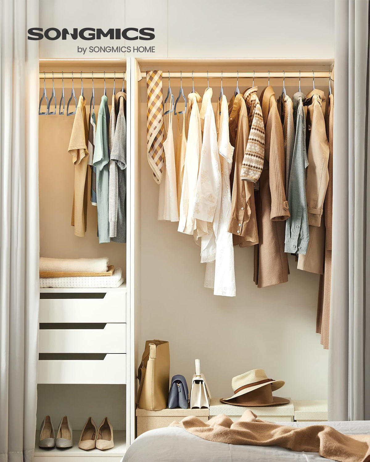 • Q: What materials are the SONGMICS Clothes Hangers made from? A: The SONGMICS Clothes Hangers are crafted from premium ABS plastic, combined with sturdy metal hooks for durability.