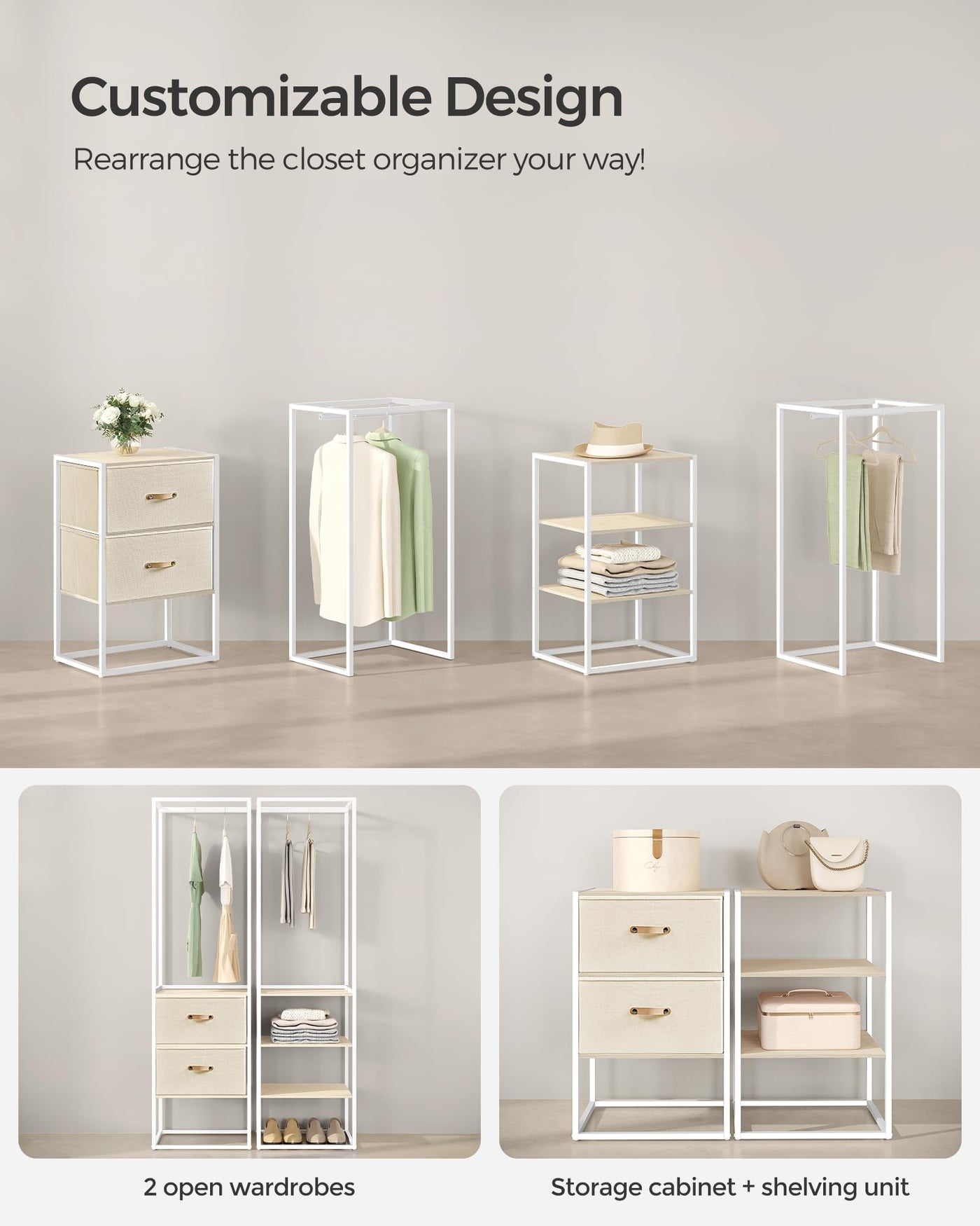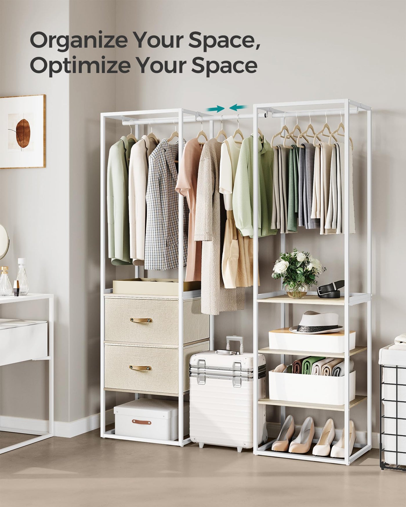 Songmics Clothes Rack, 70.9 Inch Wardrobe Freestanding Closet, Heavy Duty Garment Rack With 1 Extendable Hanging Rod, 2 Drawers