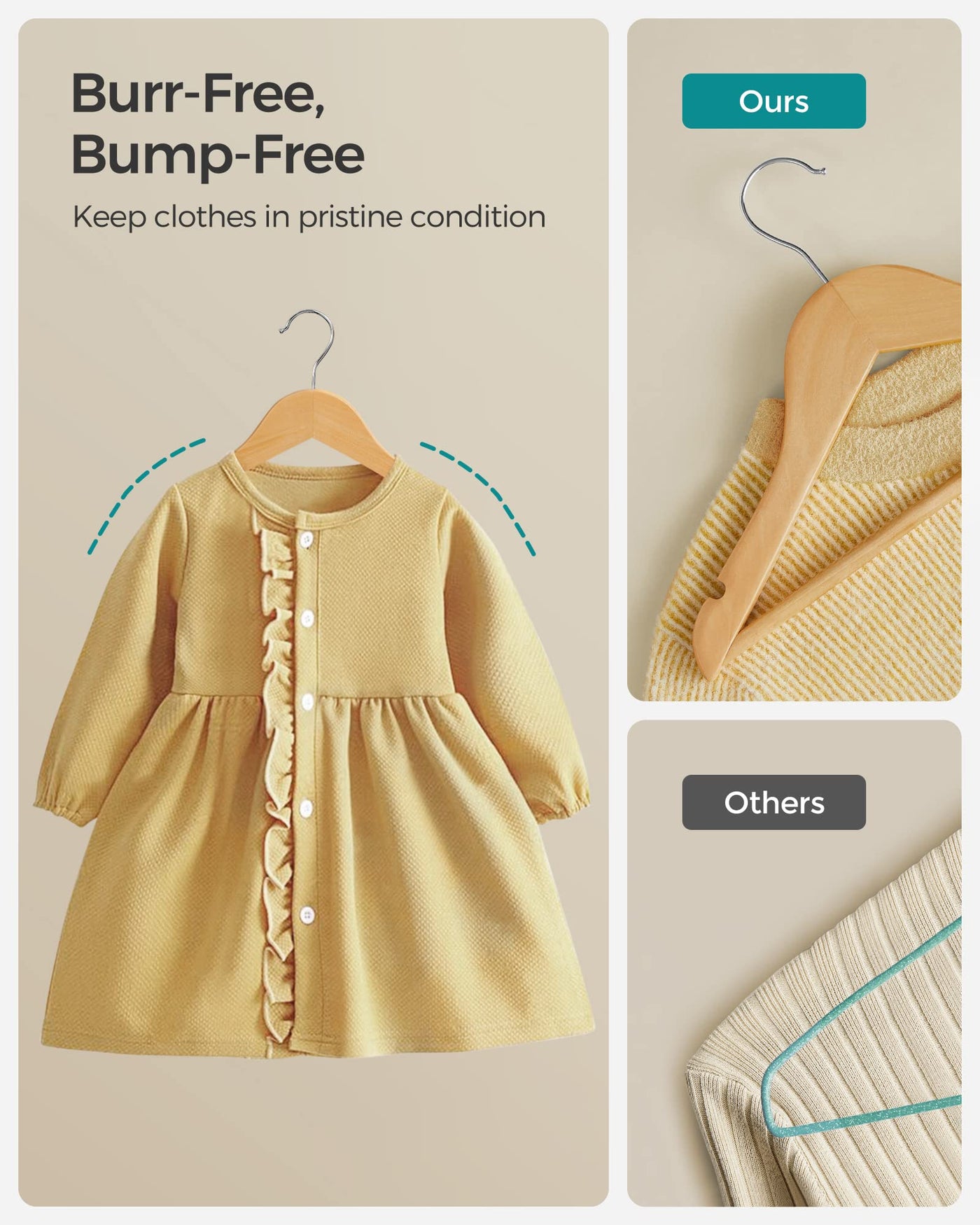 These Charming Childrens Hangers Are Designed To Bring Style And Organization To Your Little One'S Wardrobe. Made From Durable, High-Quality Maple Wood, These Hangers Offer A Solid Solution For Parents Who Want To Create An Organized Space For Their Children'S Clothes. Designed For Kids: Our Kid Wood Hangers Are Carefully Crafted To Accommodate All Types Of Clothing, From Adorable Dresses And Cozy Sweaters To Tiny Trousers And Pint-Sized Shirts. The Smooth Edges Guarantee A Secure Hold Without Snagging Or Damaging Your Child'S Garments. Specifications: - Color: Natural, Silver - Material: Solid Wood, Chromed-Plated Metal Hook - Size Of Each Hanger: 12.6 W X 7.5 H (32 X 19 Cm) - Total Weight Of 10 Hangers: 1.9 Lb (0.85 Kg) - Max. Static Load Of Each Hanger: 7.7 Lb (3.5 Kg) Package Contents: - 10 X Kids Clothes Hanger Songmics Notes: - All Load Capacities Are In Static Conditions. - Each Hanger Holds Up To 7.7 Lb; Dont Overload It For Risk Of Damaging Hanger Or Clothes. - Avoid Using The Hangers In High Temperatures Or Wet Environments For Extended Periods Of Time As It May Cause Cracking Or Paint Chipping. - Do Not Hang Wet Laundry On The Hangers. - Avoid Exposure To Direct Sunlight For A Long Time. - Please Do Not Use The Product In A Washing Machine Or Tumble Dryer. - Clean The Clothes Hangers By Wiping Them With A Cloth.