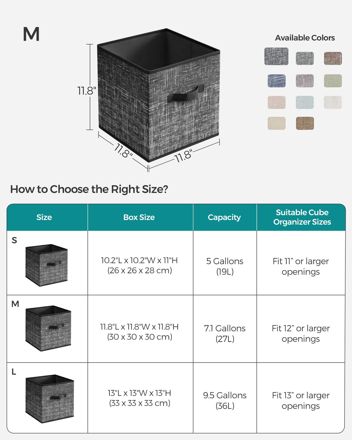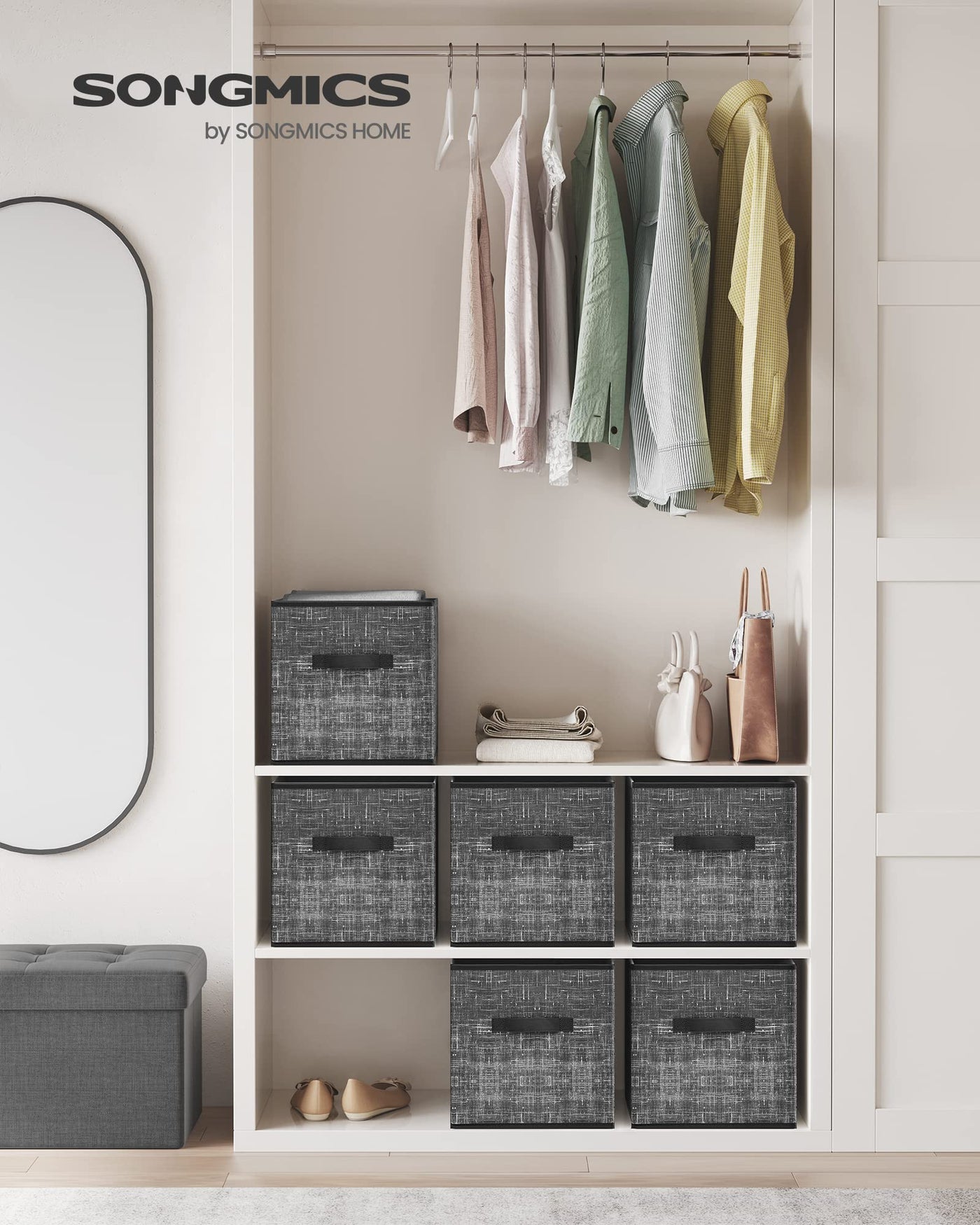 Songmics Storage Cubes, 11.8-Inch Non-Woven Fabric Bins With Double Handles, Set Of 6, Closet Organizers For Shelves, Foldable,