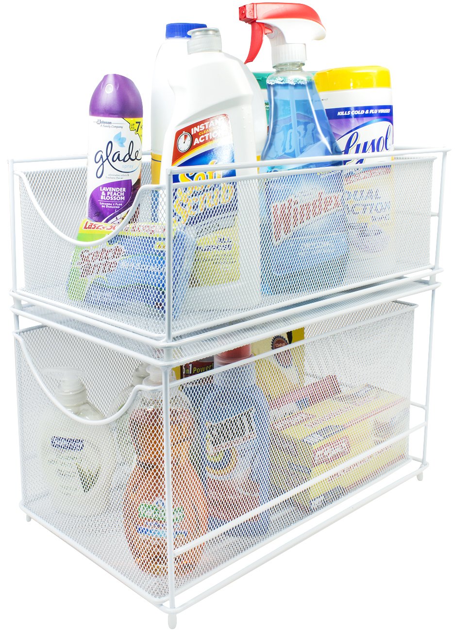 • Q: What are the dimensions of the Sorbus Cabinet Organizer Set? A: The entire unit measures approximately 15.5 inches long, 9.62 inches wide, and 15 inches high.
