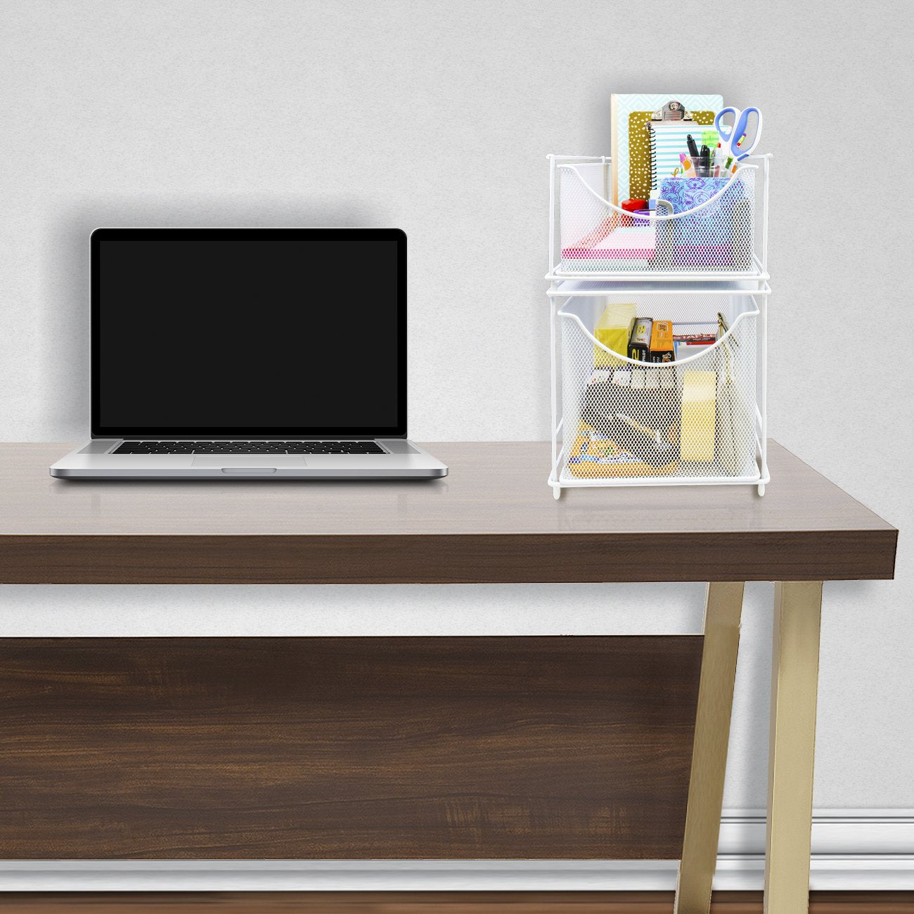 • Q: What materials are used in the construction of the organizer? A: The organizer is made of steel mesh with a sleek silver finish, providing durability and a modern look.