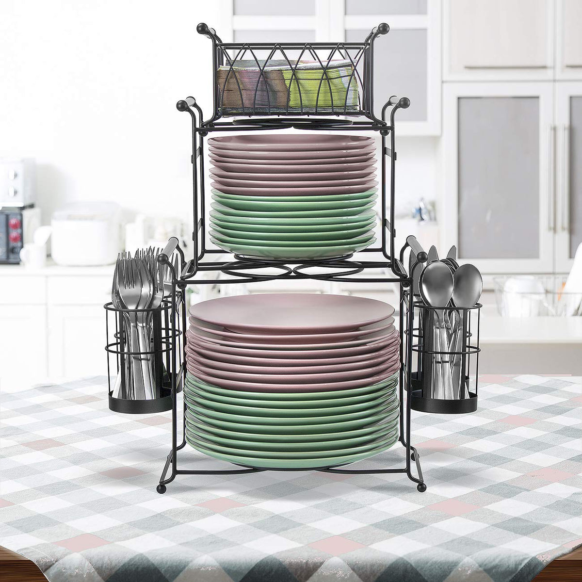 Sorbus Buffet Caddy - 7-Piece Stackable Set Includes Plate, Napkin, And Silverware Holder, 3-Tier Detachable Tabletop Organizer