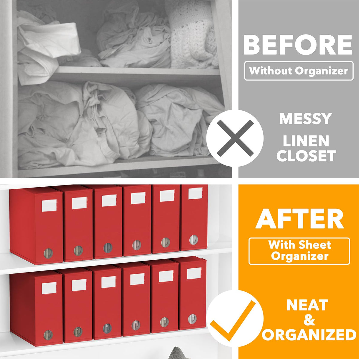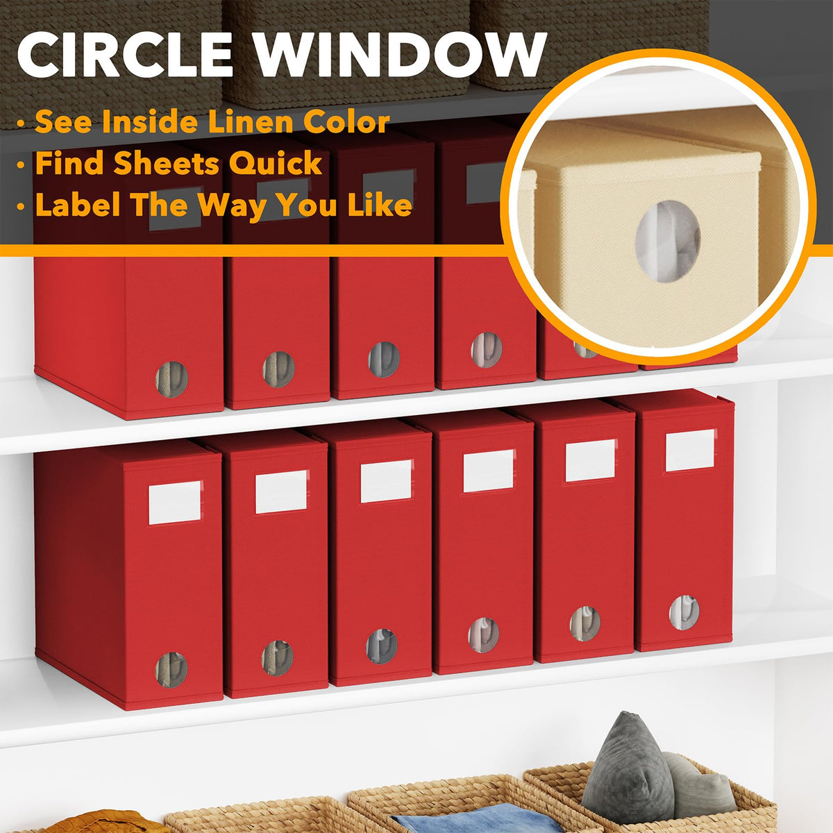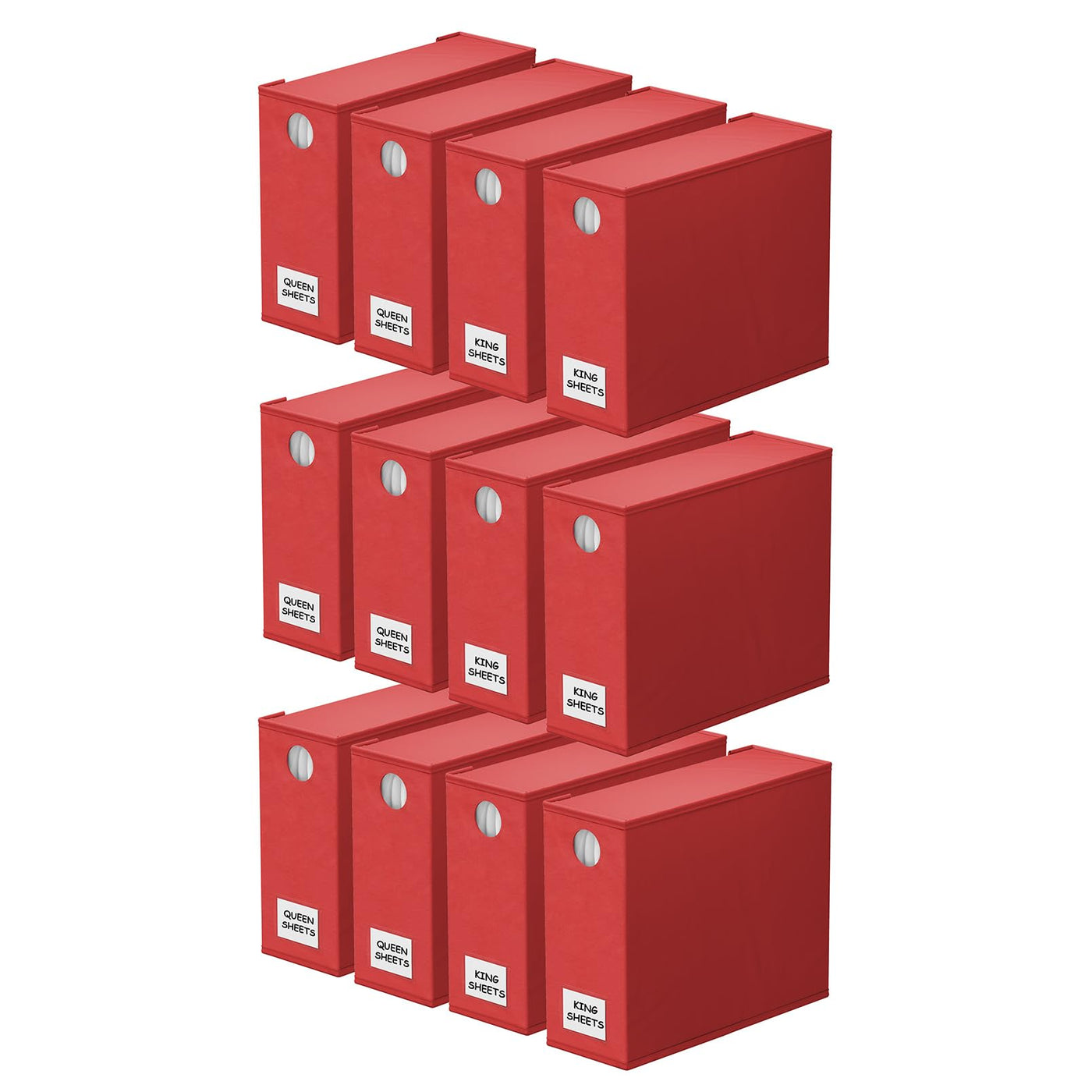 SpaceAid 12 Pack Bed Sheet Organizers and Storage, Foldable Sheet Organizer for Linen Closet, Sheets Set Folder Keeper with Window XL (Queen & King Size) Bedding Container (Red, 12 Pack)