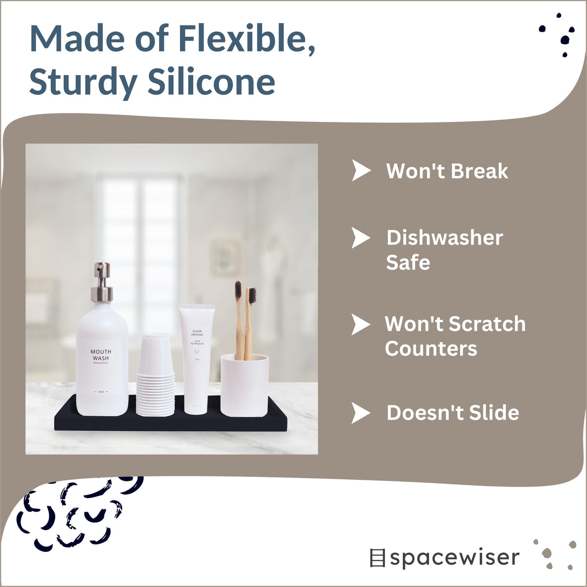 Spacewiser Countertop And Vanity Tray - 2 Pc Large 11.7'' Silicone Bathroom Counter Organizer, Dish Soap Sponge Holder Kitchen S