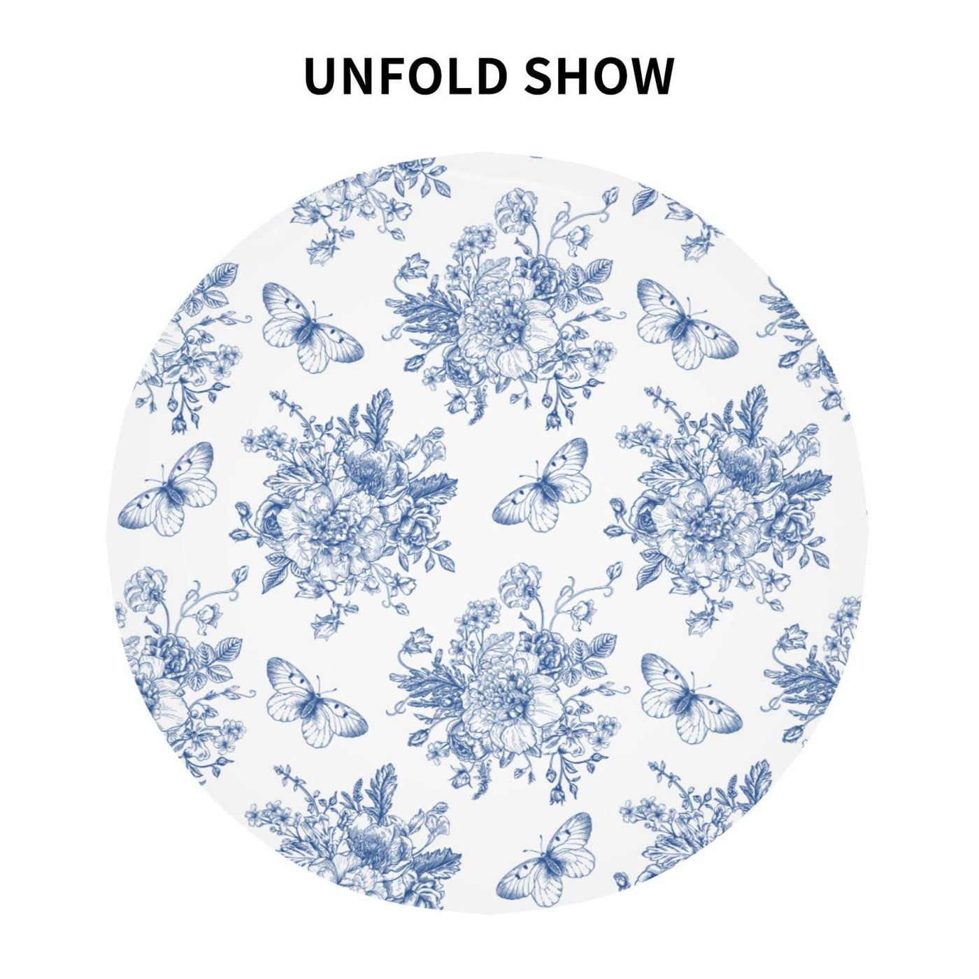 Spring Floral Tablecloth Round 60 Inch Ruitic Butterfly Table Cloth Waterproof Fabric Farmhouse Blue White Flower Tablecloths De