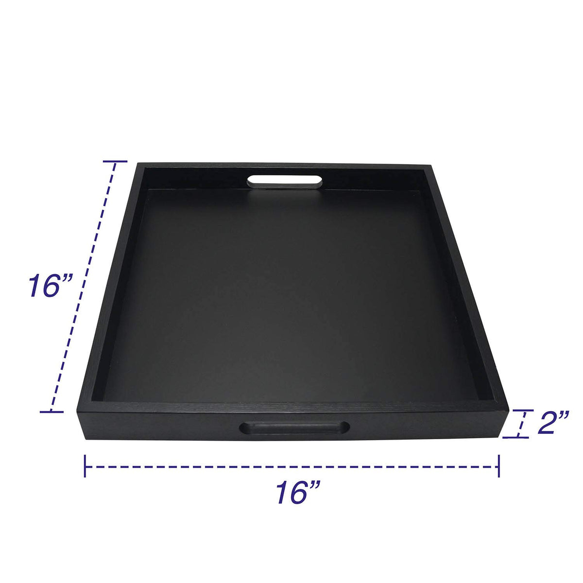 Square Wood Serving Tray With Handle, Ottoman Decorative For Home, 16X16 Inches Black