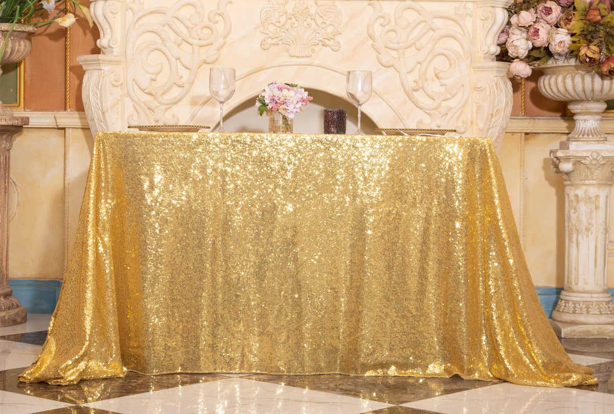 Squarepie Sequin Tablecloth Rectangular 50 X 72 Inch Gold Reflect Lights Bling Sparkly Table Linen For Wedding Party