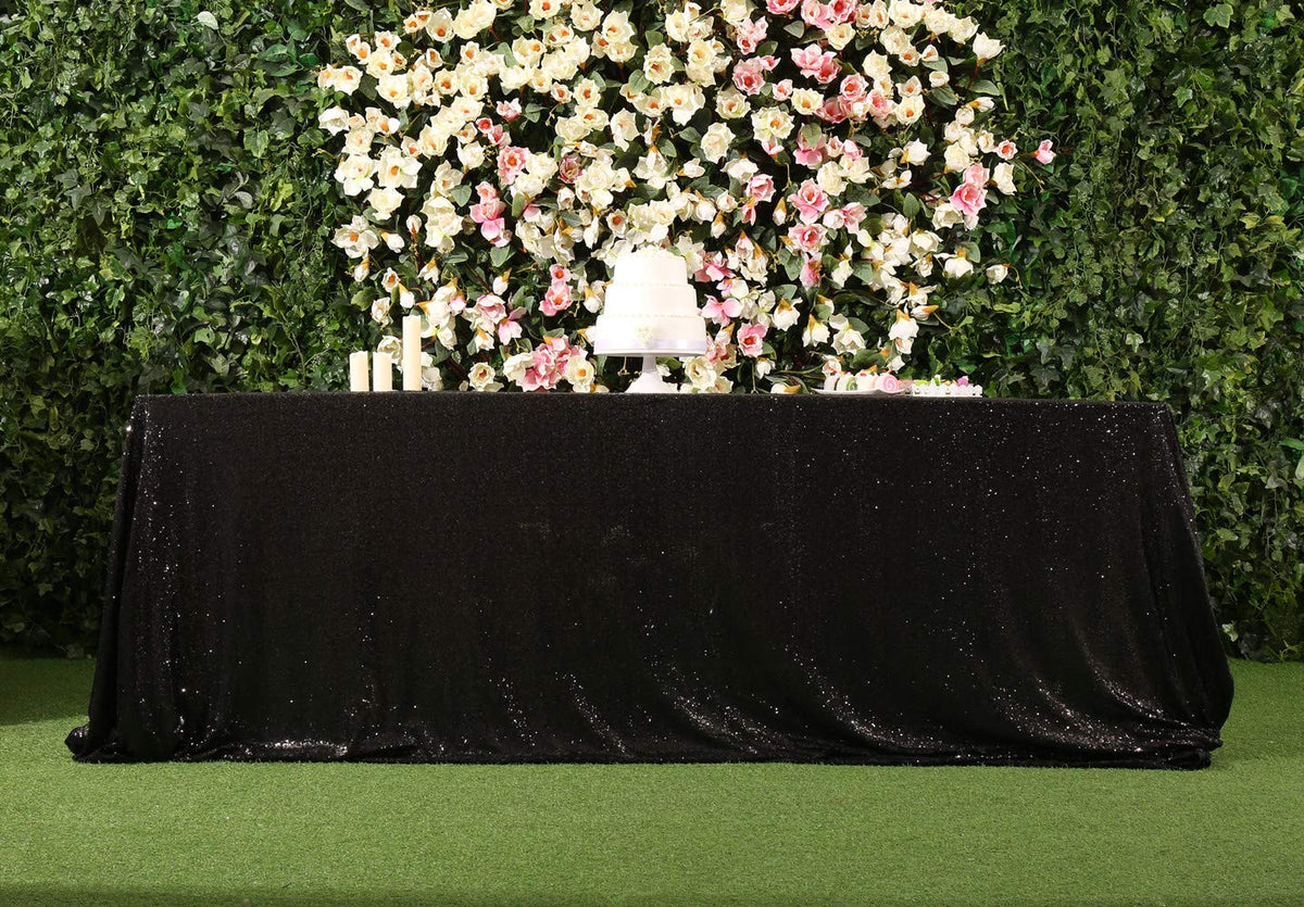 Squarepie Sequin Tablecloth Rectangular 90 X 156 Inch Black Reflect Lights Bling Sparkly Table Linen For Wedding Party